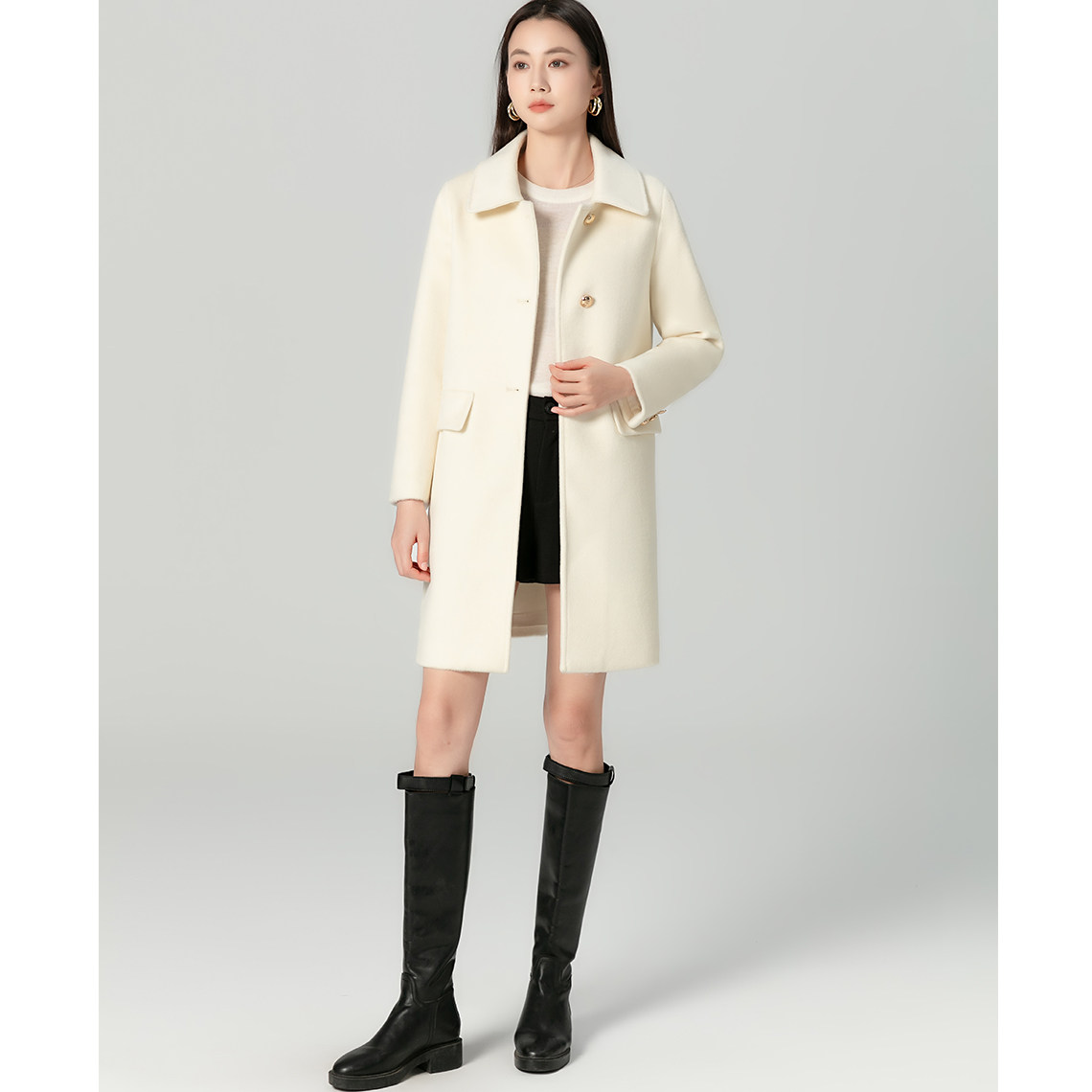 2026秋冬新款中长款白色单面羊毛呢大衣,专为小个子女性精心打造。采用优质单面羊毛呢面料,质感挺括、保暖性佳,同时轻盈不压身。经典纯白色调简约高级,轻松搭配各类内搭与下装。中长版型巧妙拉长腿部线条,优化身材比例,显高又显瘦。利落剪裁结合精致走线,细节彰显品质。翻领设计优雅大方,袖口与下摆做工考究,兼顾实用与美感。无论是通勤、约会还是日常出行,都能轻松驾驭,展现知性温婉气质。是小个子女生秋冬衣橱不可或缺的百搭单品。
