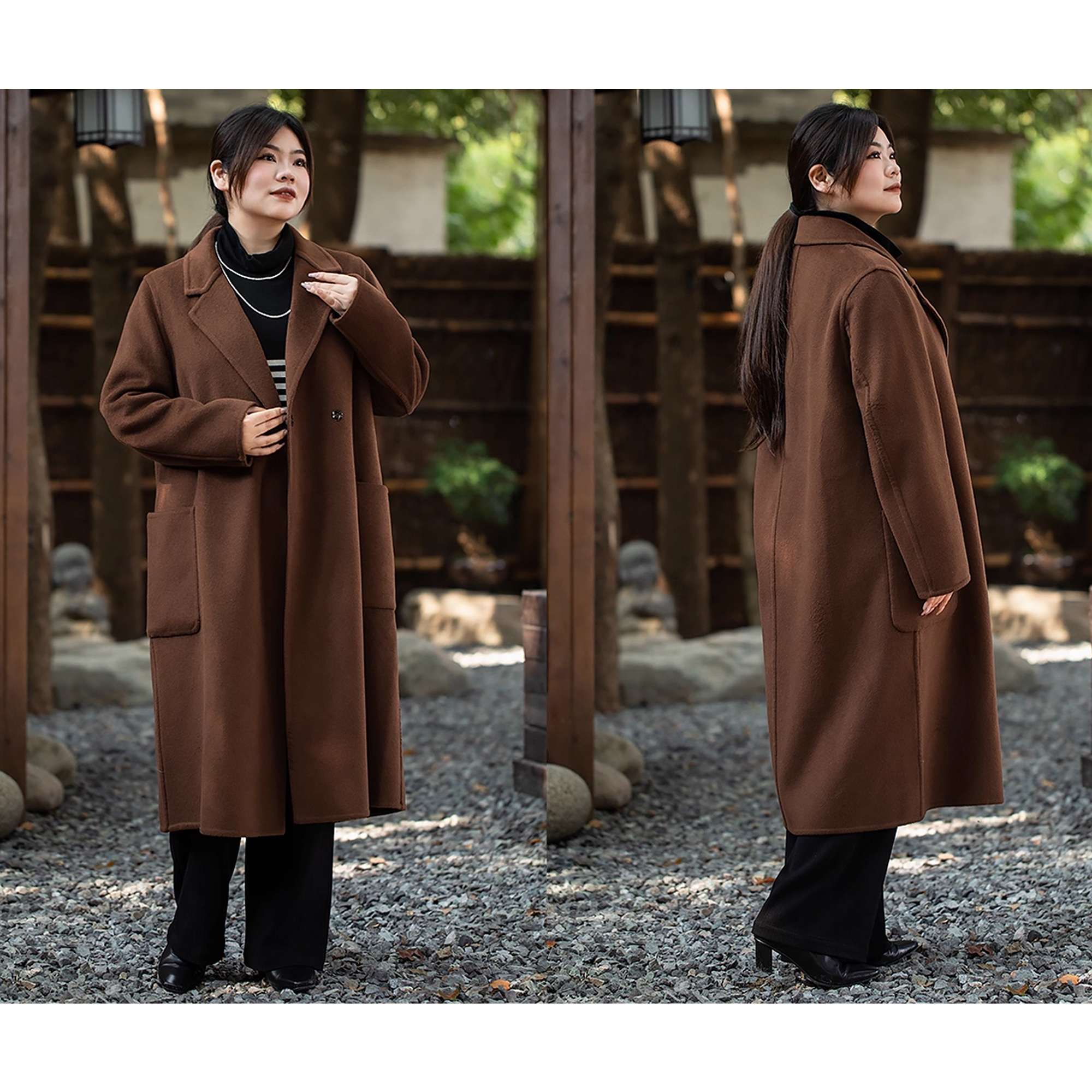 曹大曼 美拉德焦糖色双面羊绒大衣女长款慵懒风橘色加厚毛呢外套