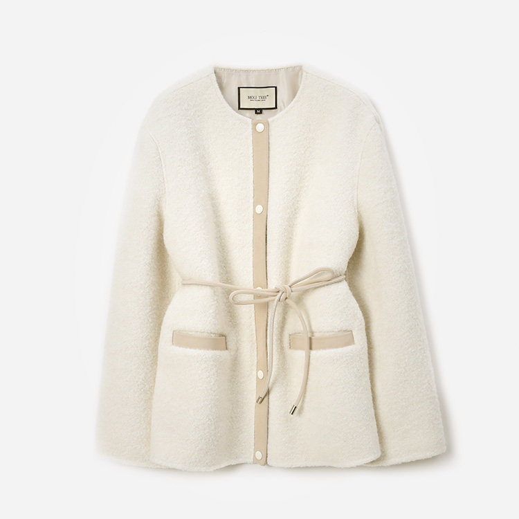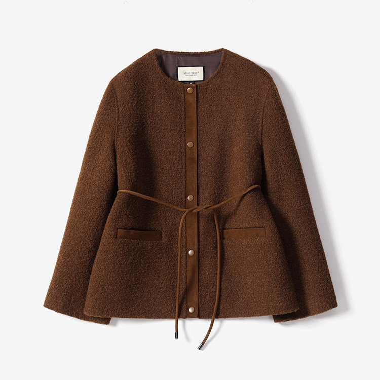 WWT06228暖绒丰盈羊驼毛羊毛圈圈双面呢拼羊皮短外套大衣,精选优质羊驼毛与羊毛混纺,结合独特圈圈呢工艺,双面可穿,质感丰盈,保暖性极佳。衣身拼接柔软羊皮袖口与领部,提升整体层次感与奢华触感。短款设计利落修身,凸显女性优雅气质,兼顾时尚与实穿性。无论是通勤还是休闲场合,都能轻松驾驭,展现都市女性的自信与品味。细节做工精致,走线工整,彰显匠心品质。冬日里,这件大衣不仅是温暖伴侣,更是穿搭亮点,为寒冷季节注入温暖与风格。