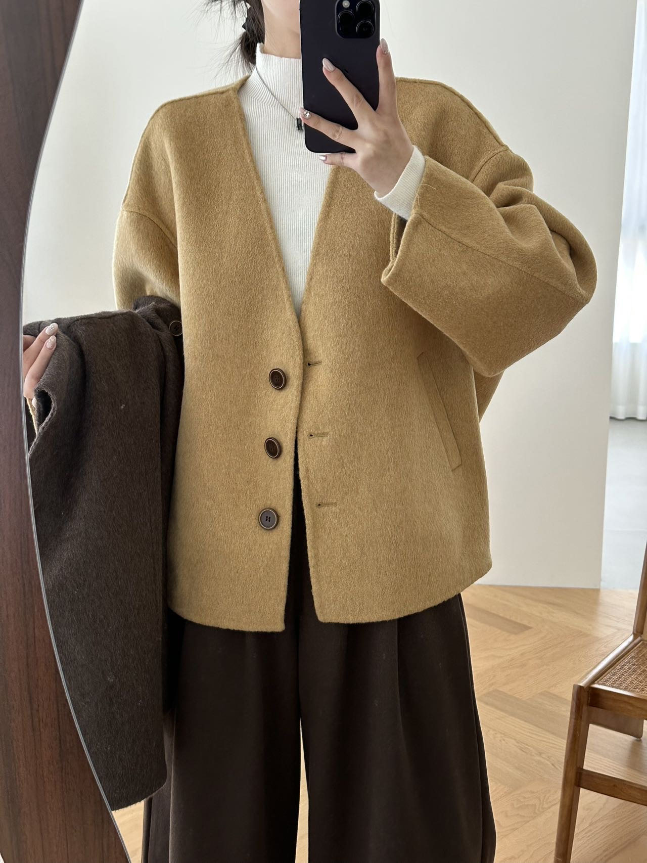高档反季双面羊绒大衣女西装领韩版茧型宽松小个子羊毛呢子外套