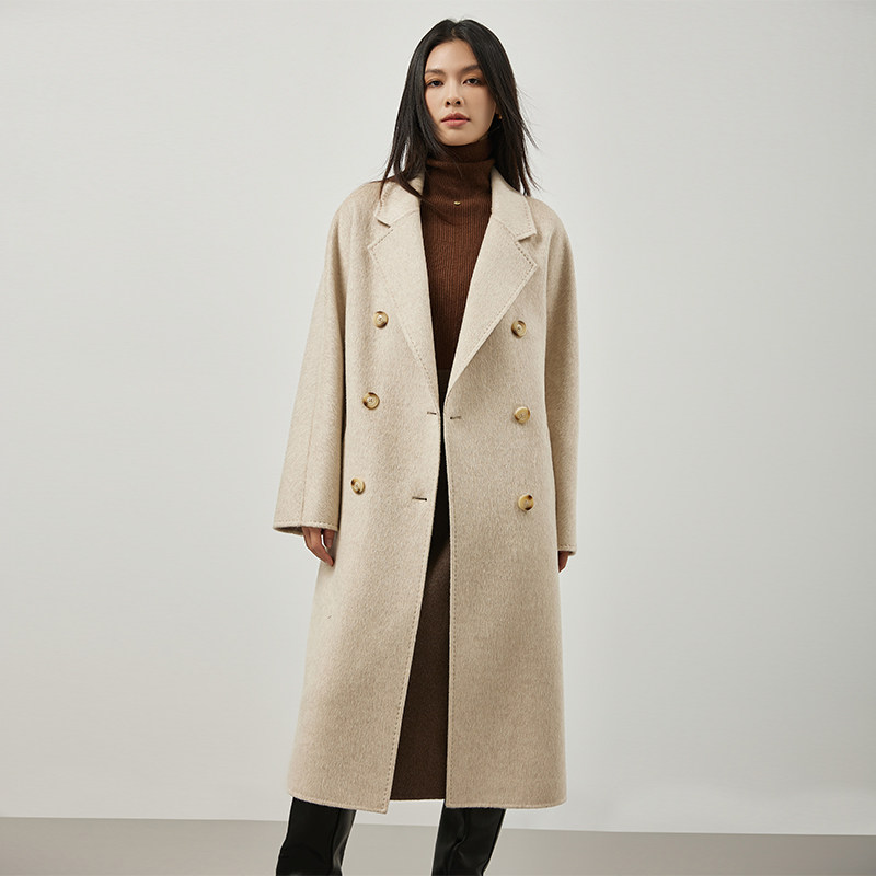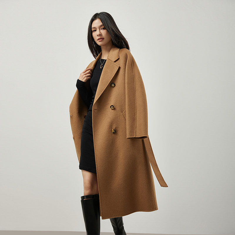 天猫帕特纳驼绒桑蚕丝上衣赫本风小个子外衣毛呢子外套双面羊毛大衣女