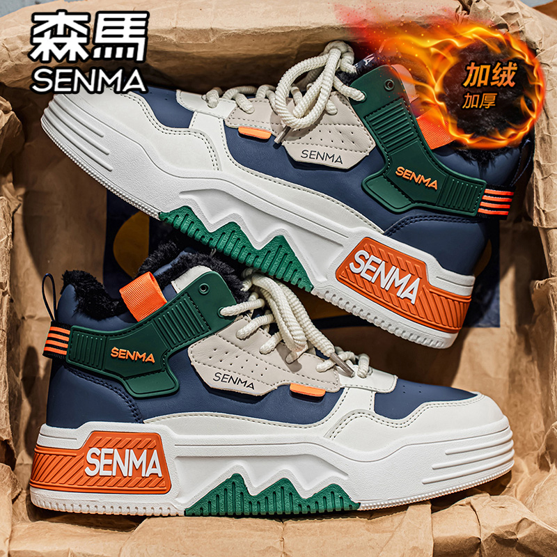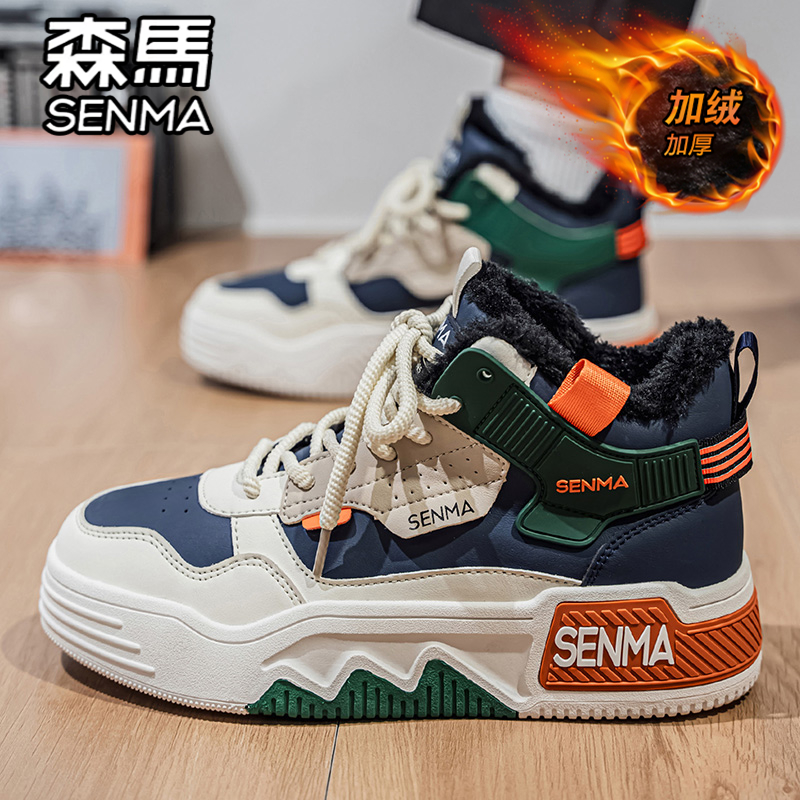 天森马男鞋冬季加绒加厚保暖二棉鞋运动休闲青少年高帮板鞋小白潮鞋