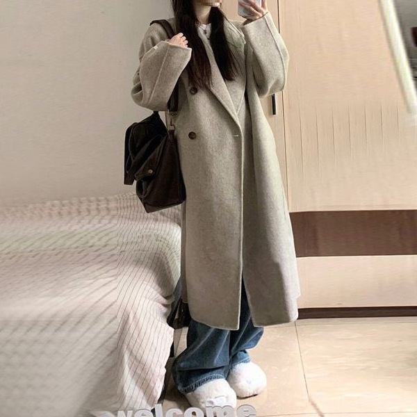 淘宝2025加厚加绒中长款毛呢女款外套秋冬小个子港风慵懒呢子大衣