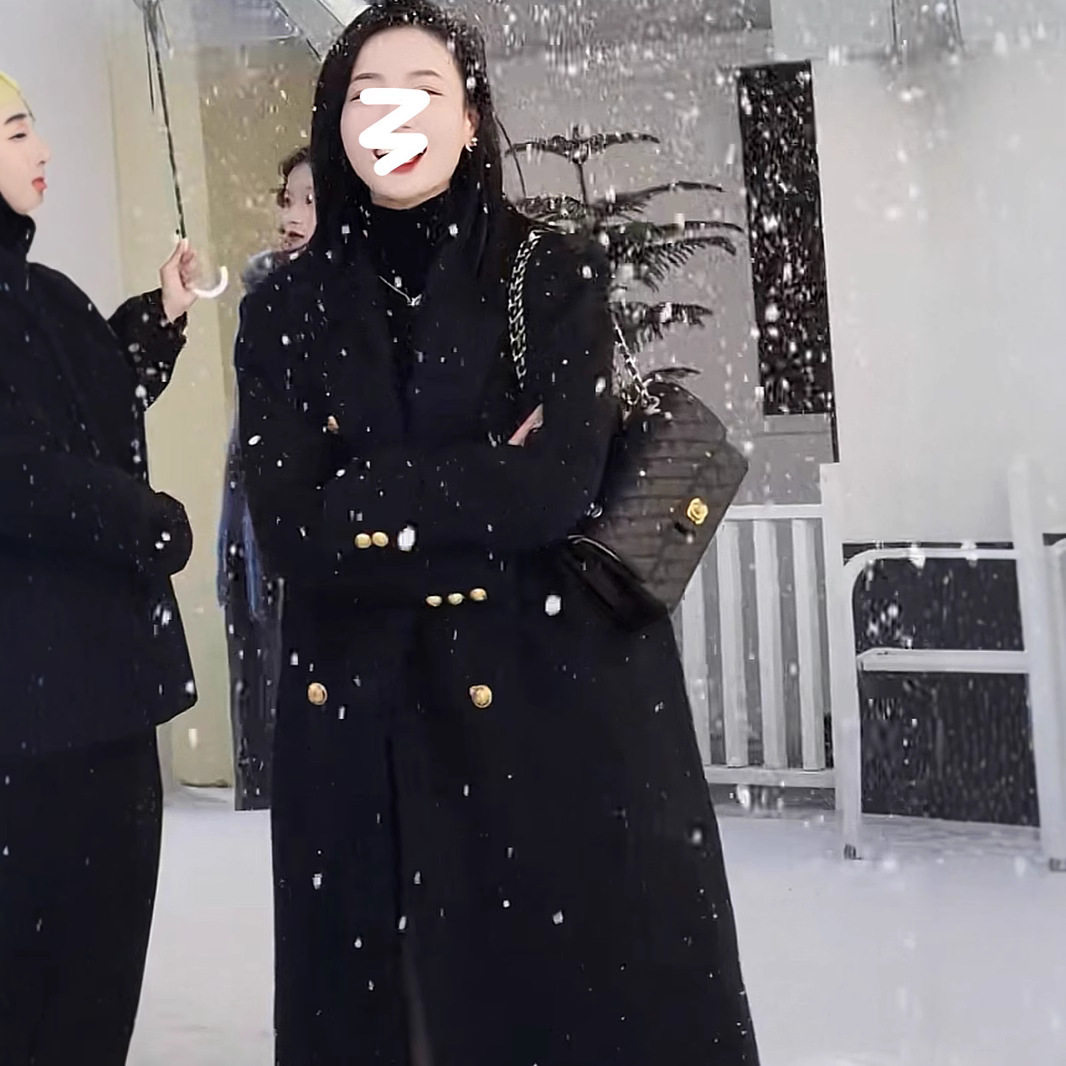 淘cold敌黑色双面羊绒大衣中长款25秋冬新款气质立领绵羊毛呢外套女