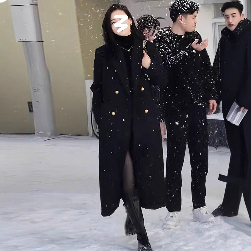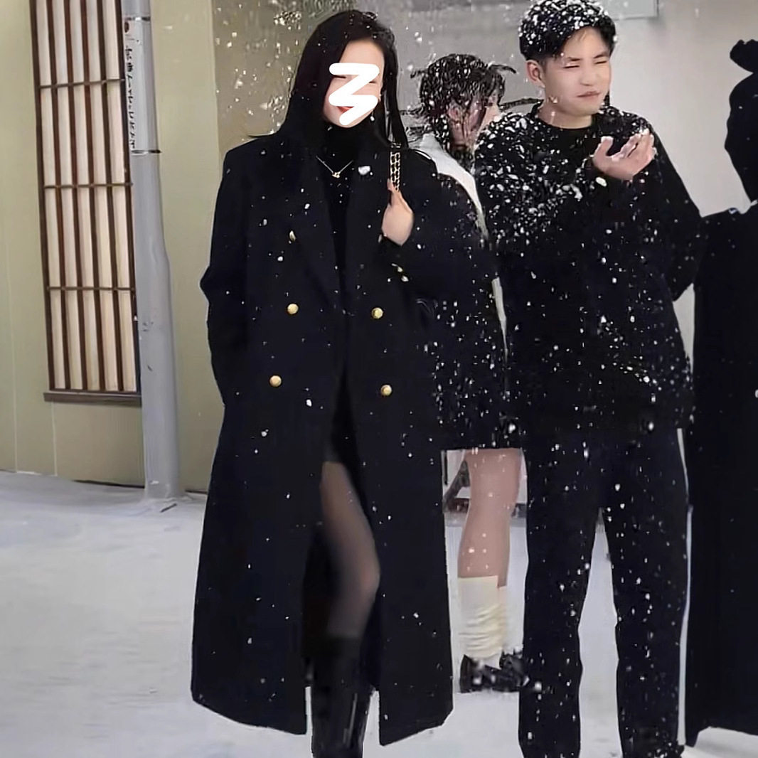 cold敌黑色双面羊绒大衣中长款25秋冬新款气质立领绵羊毛呢外套女