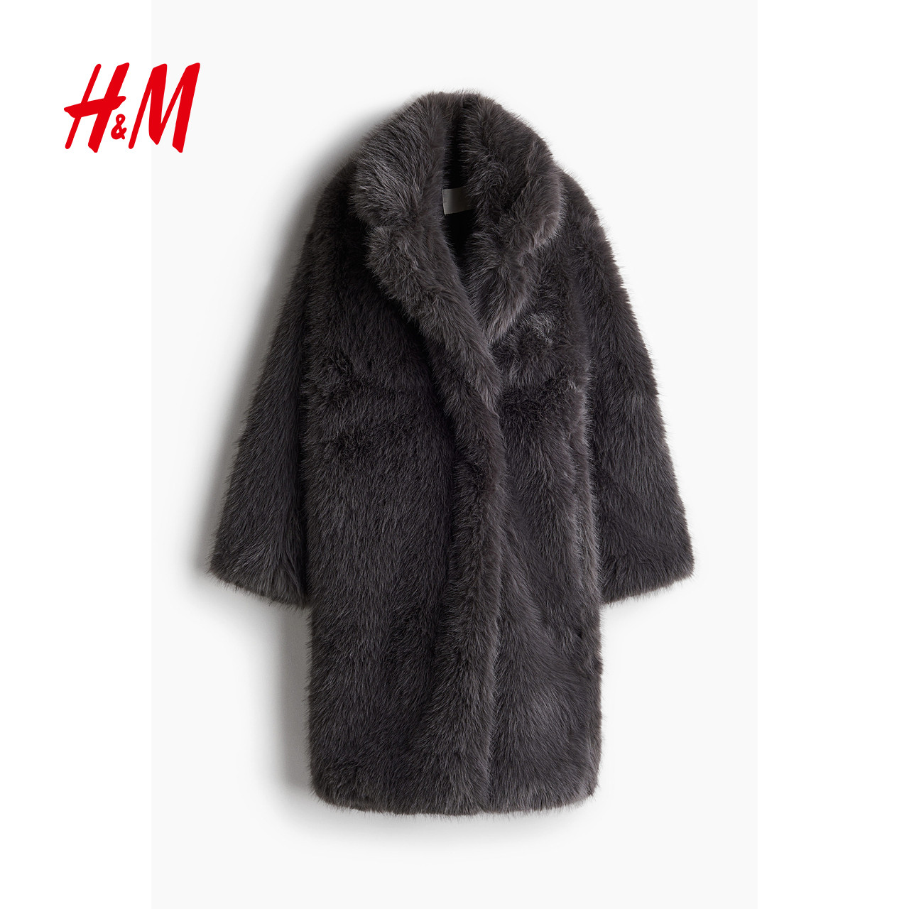 天猫HM女装毛呢外套冬季保暖仿皮草中长款绒感大衣毛毛外套1101014