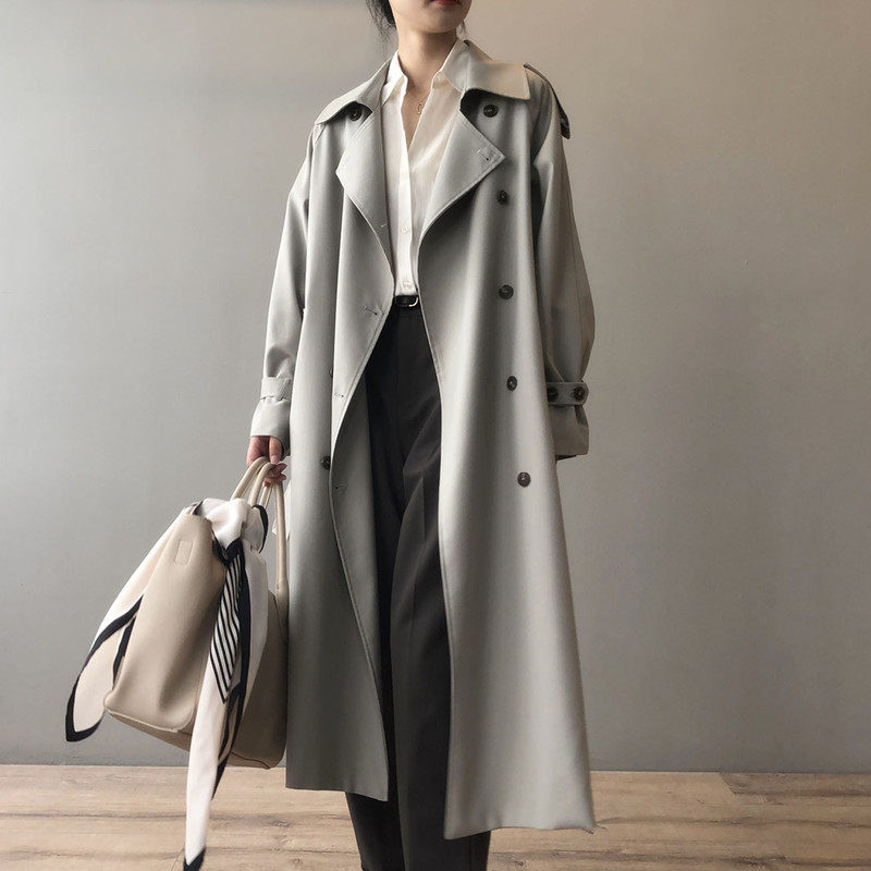 淘宝春秋英伦风中长款风衣女高级感大衣高个子双排扣气质休闲垂感外套