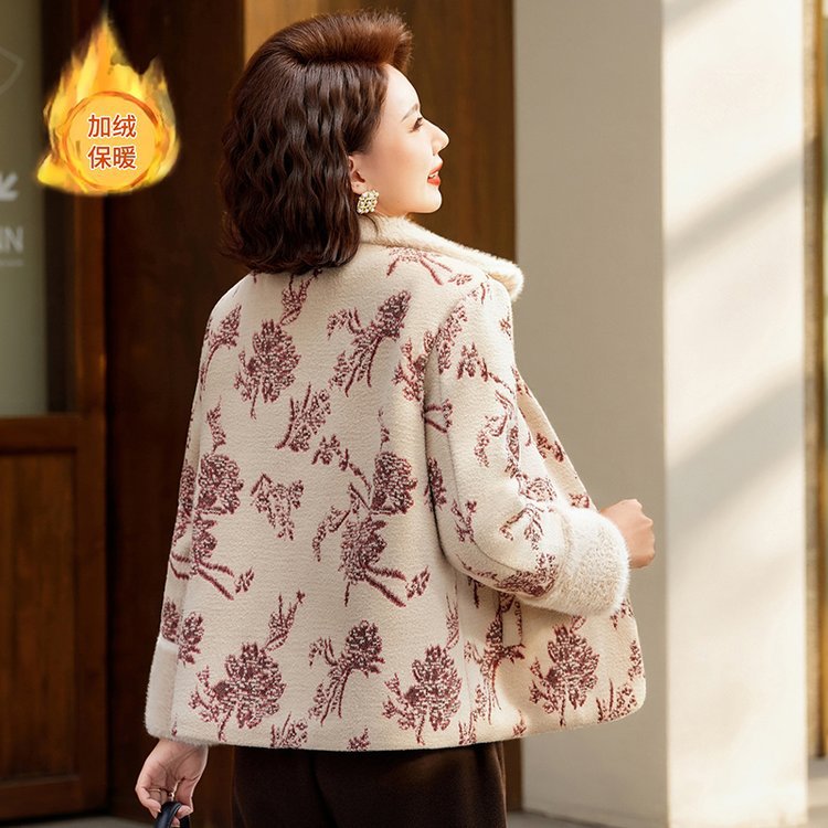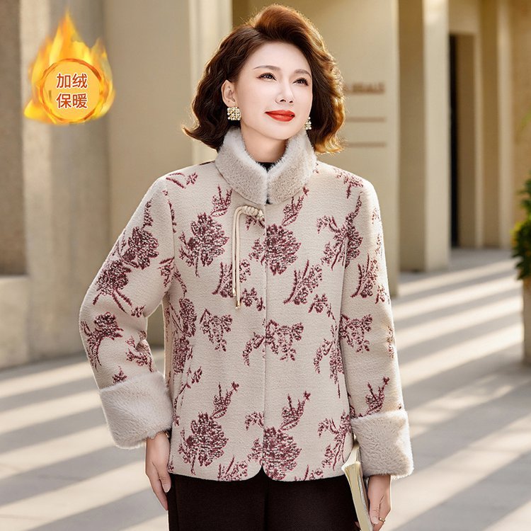 中年妈妈冬装毛呢外套女中老年人呢子大衣加绒加厚水貂绒上衣