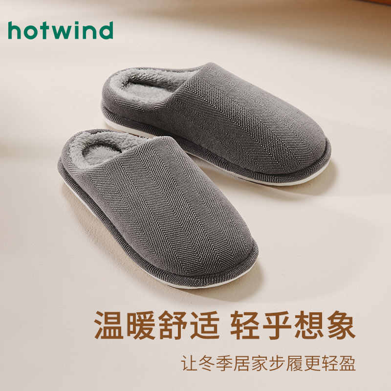 天猫2023年冬季新款纯色黑灰保暖加厚包头拖鞋棉拖男士时尚家居鞋