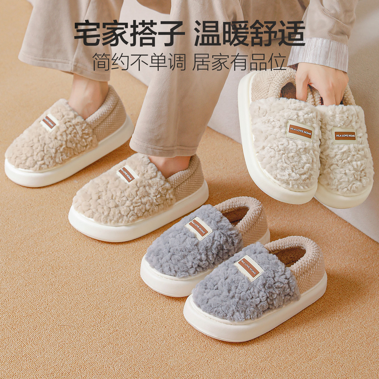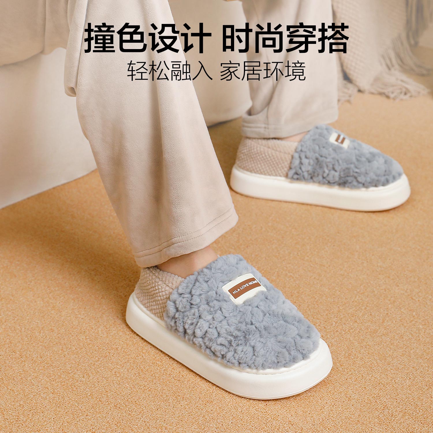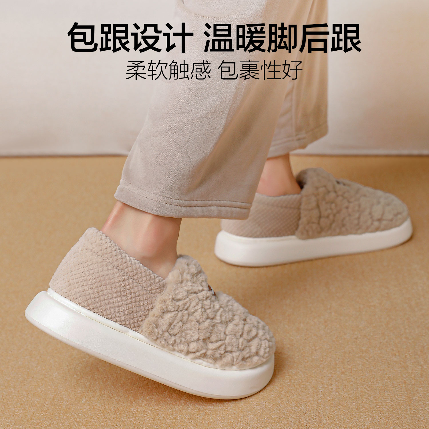 淘秋冬季棉拖鞋女款包跟室内居家居防滑厚底月子毛毛绒拖鞋男士冬天