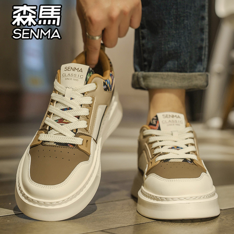 天猫森马男鞋2025新款冬季百搭拼接休闲小白板鞋运动增高男士真皮潮鞋