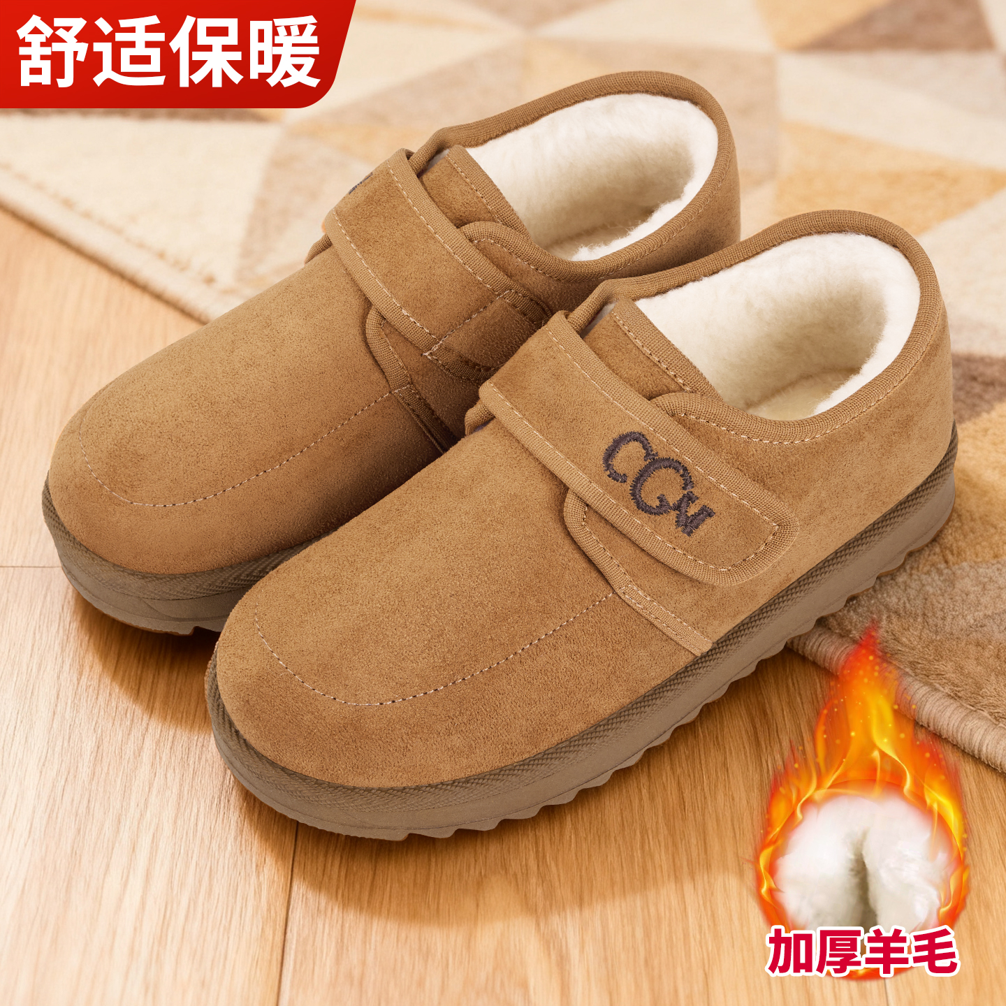 足力健老人鞋2025冬季新款加绒加厚老北京棉鞋保暖抗寒休闲妈妈鞋