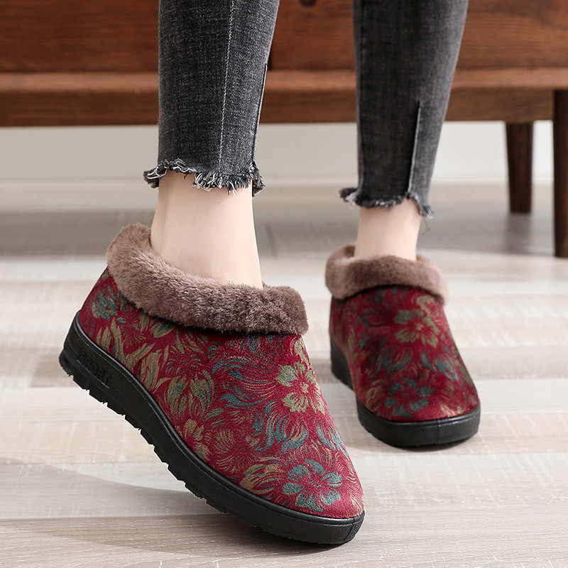 老北京布鞋女加绒妈妈棉鞋冬季防滑软底保暖奶奶鞋平底休闲豆豆鞋