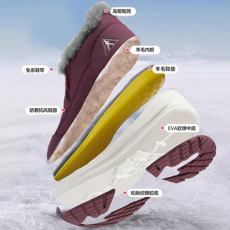 回力雪地靴女鞋25冬季中老年妈妈鞋加绒保暖健步老人鞋子奶奶棉鞋