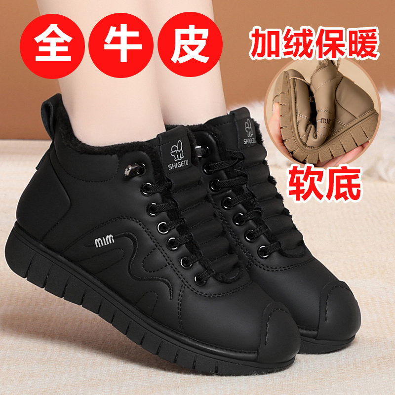 淘宝超软软底加绒保暖真皮妈妈皮鞋冬季平底防滑中老年女棉鞋休闲鞋女