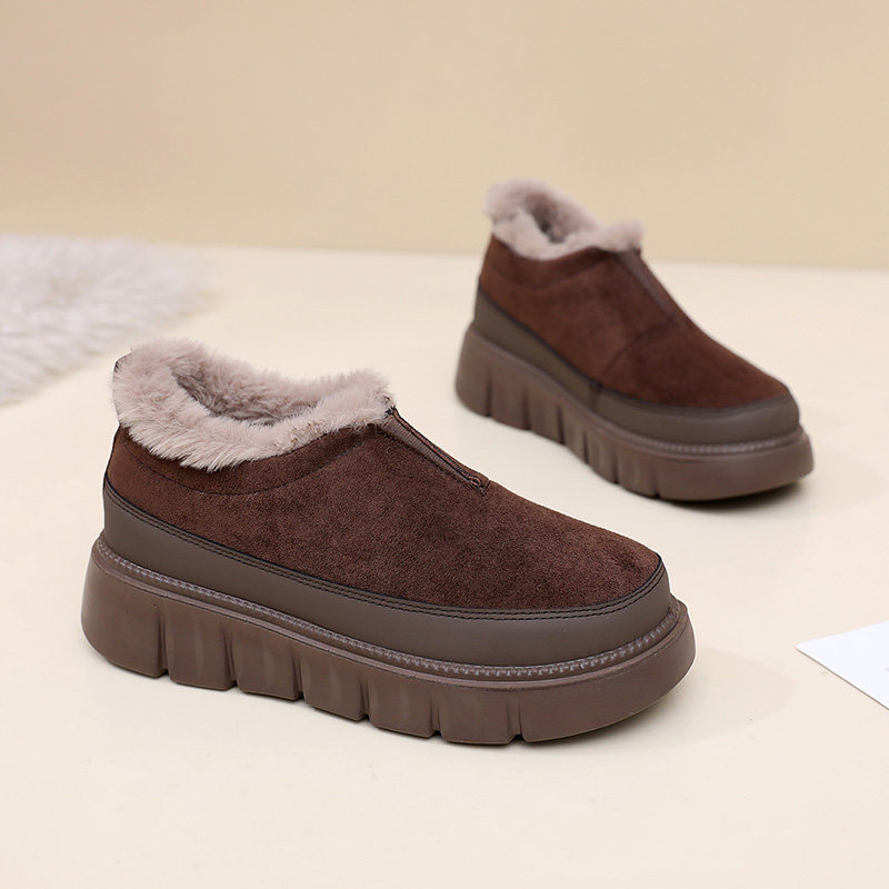 冬季老北京棉鞋女加绒保暖毛毛鞋加厚防滑豆豆鞋平底休闲妈妈棉靴