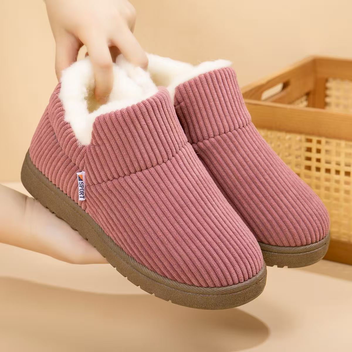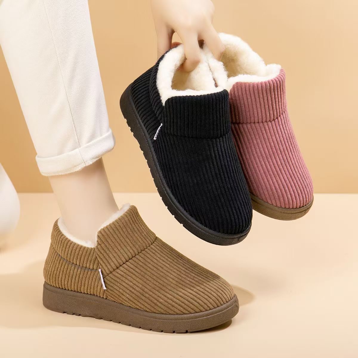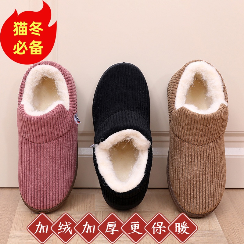 冬季老北京棉鞋女加绒保暖毛毛鞋加厚防滑豆豆鞋平底休闲妈妈棉靴