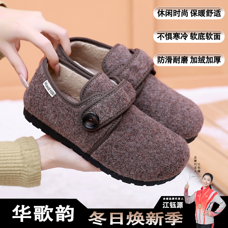 天新款老北京布鞋冬季加绒女棉鞋保暖中老年妈妈鞋居家羊毛棉拖外穿