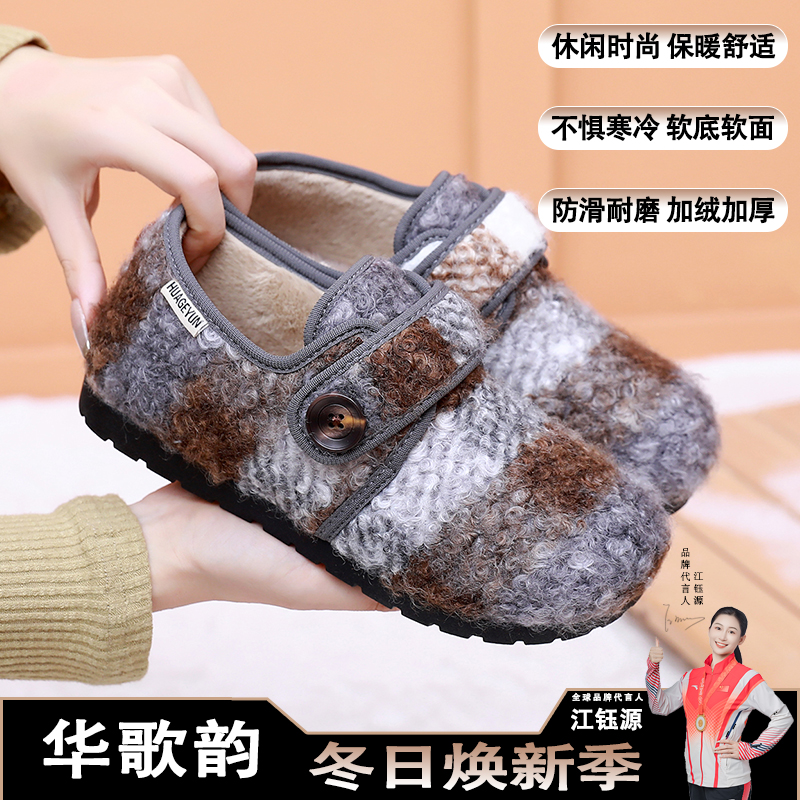 新款老北京布鞋冬季加绒女棉鞋保暖中老年妈妈鞋居家羊毛棉拖外穿