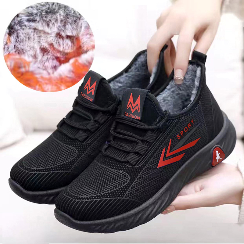 足力健老人鞋官方旗舰店正品女秋冬加绒网面休闲运动妈妈保暖健步