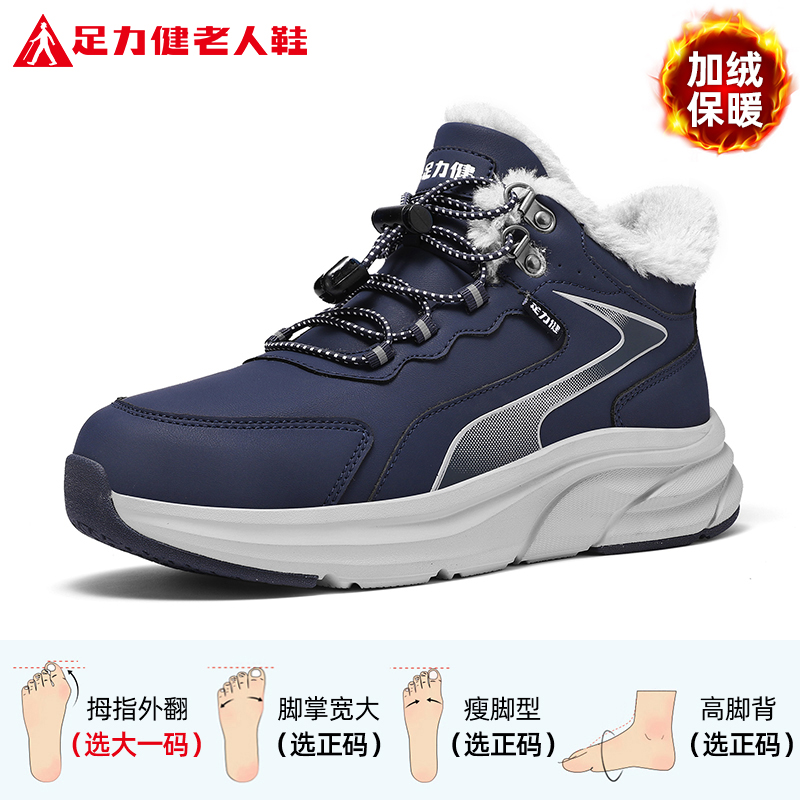 天足力健官方旗舰店正品老人鞋冬季加绒保暖妈妈健步轻便皮面棉鞋女