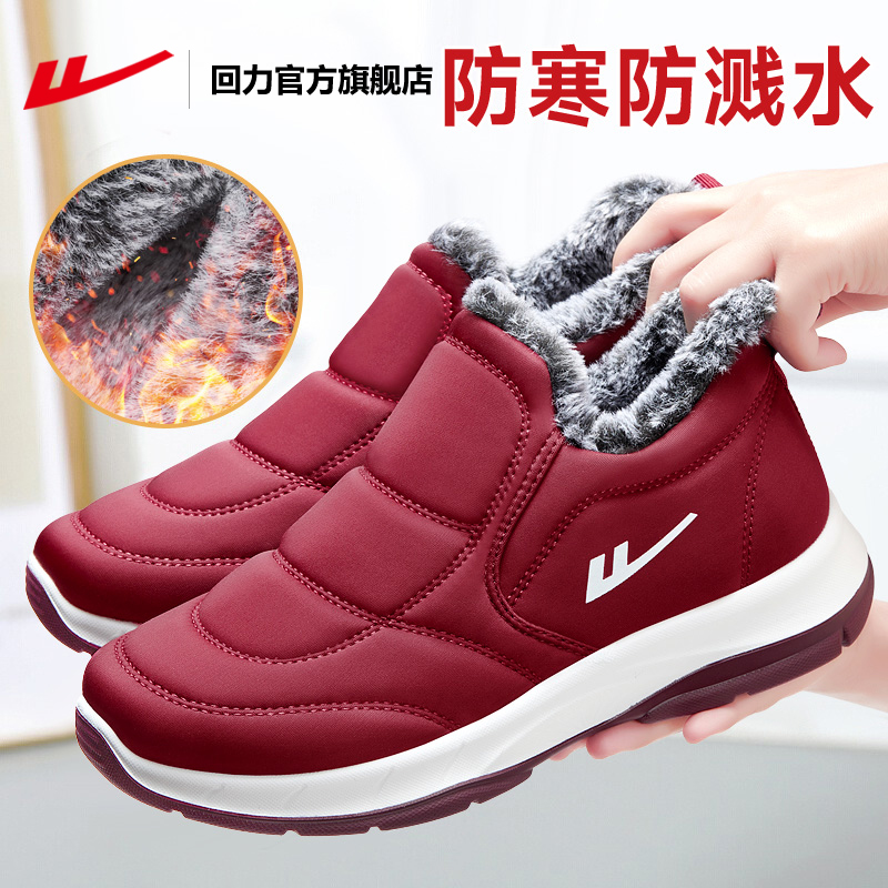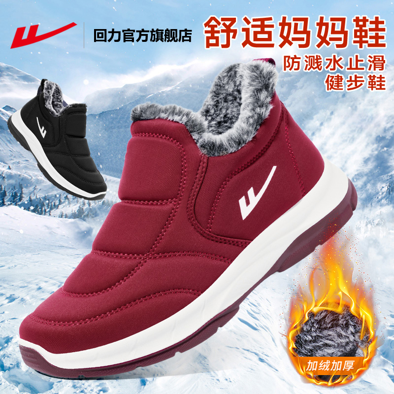 天猫回力官方旗舰店棉鞋女款冬季加绒加厚老人鞋保暖防滑妈妈鞋雪地靴