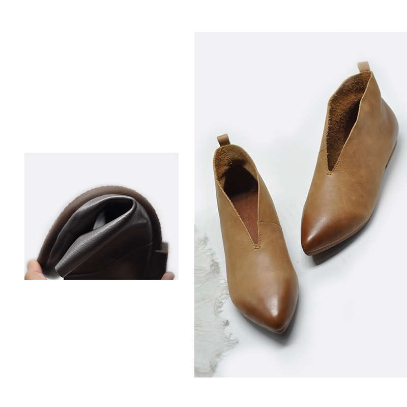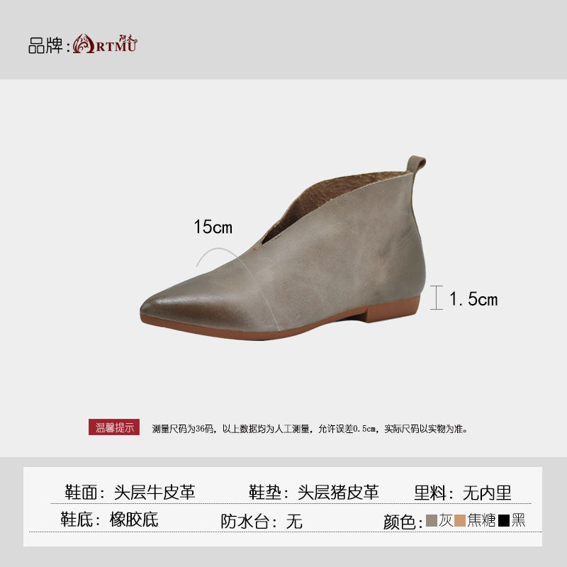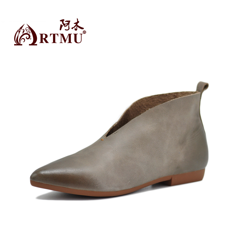 天猫Artmu阿木秋新款休闲牛皮尖头裸靴休闲低跟单靴软底女鞋妈妈鞋