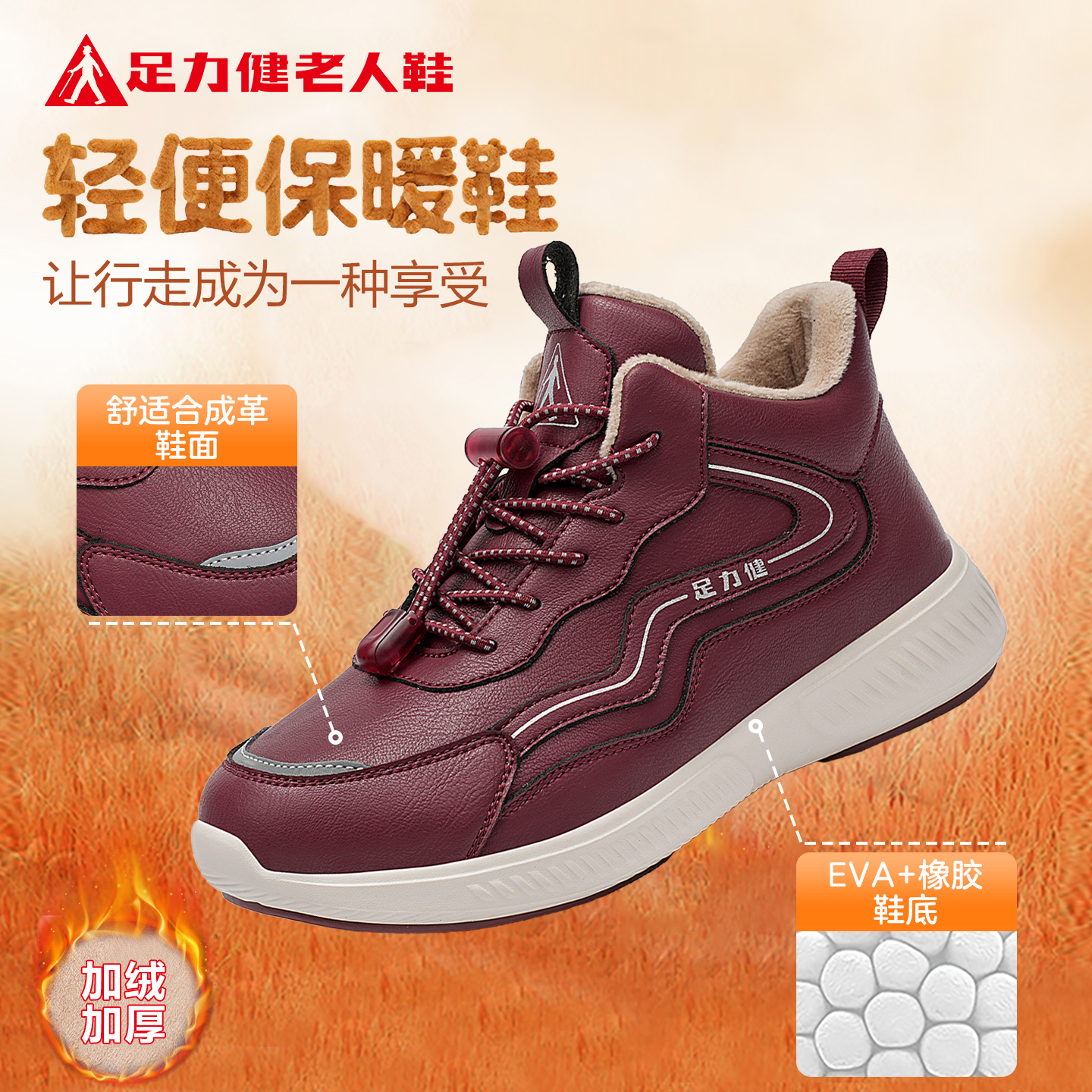 足力健老人鞋2025冬季新款加绒加厚保暖二棉鞋女红色本命年妈妈鞋