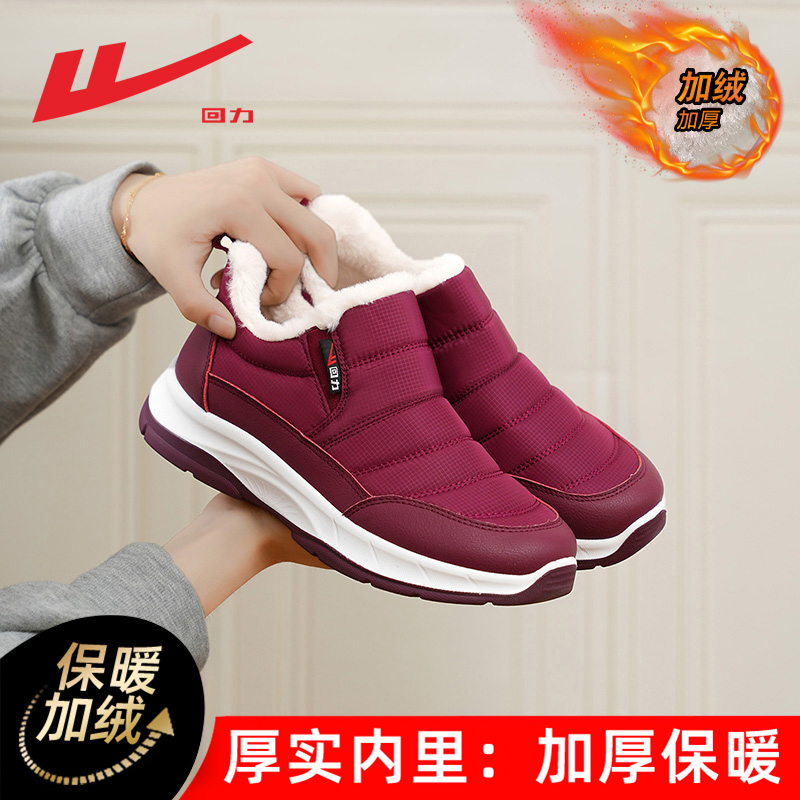 回力棉鞋女款冬季加绒加厚软底中老年鞋子女鞋包跟外穿保暖妈妈鞋