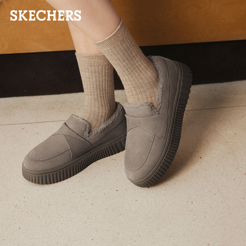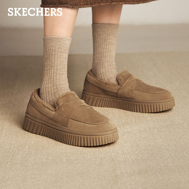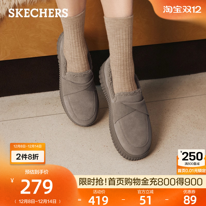 天猫斯凯奇女鞋加绒保暖女士低帮浅口单鞋轻便妈妈鞋舒适2025秋冬新款