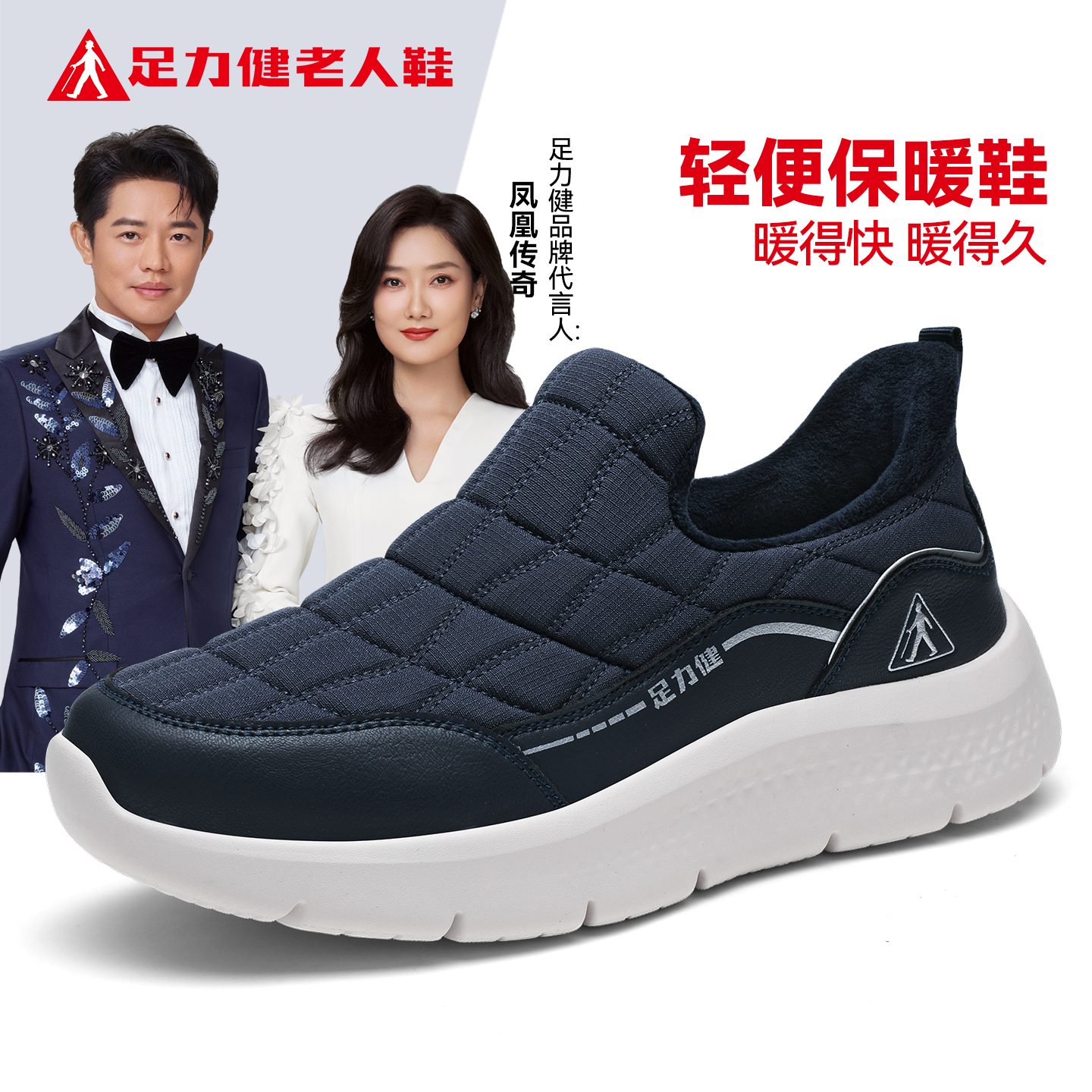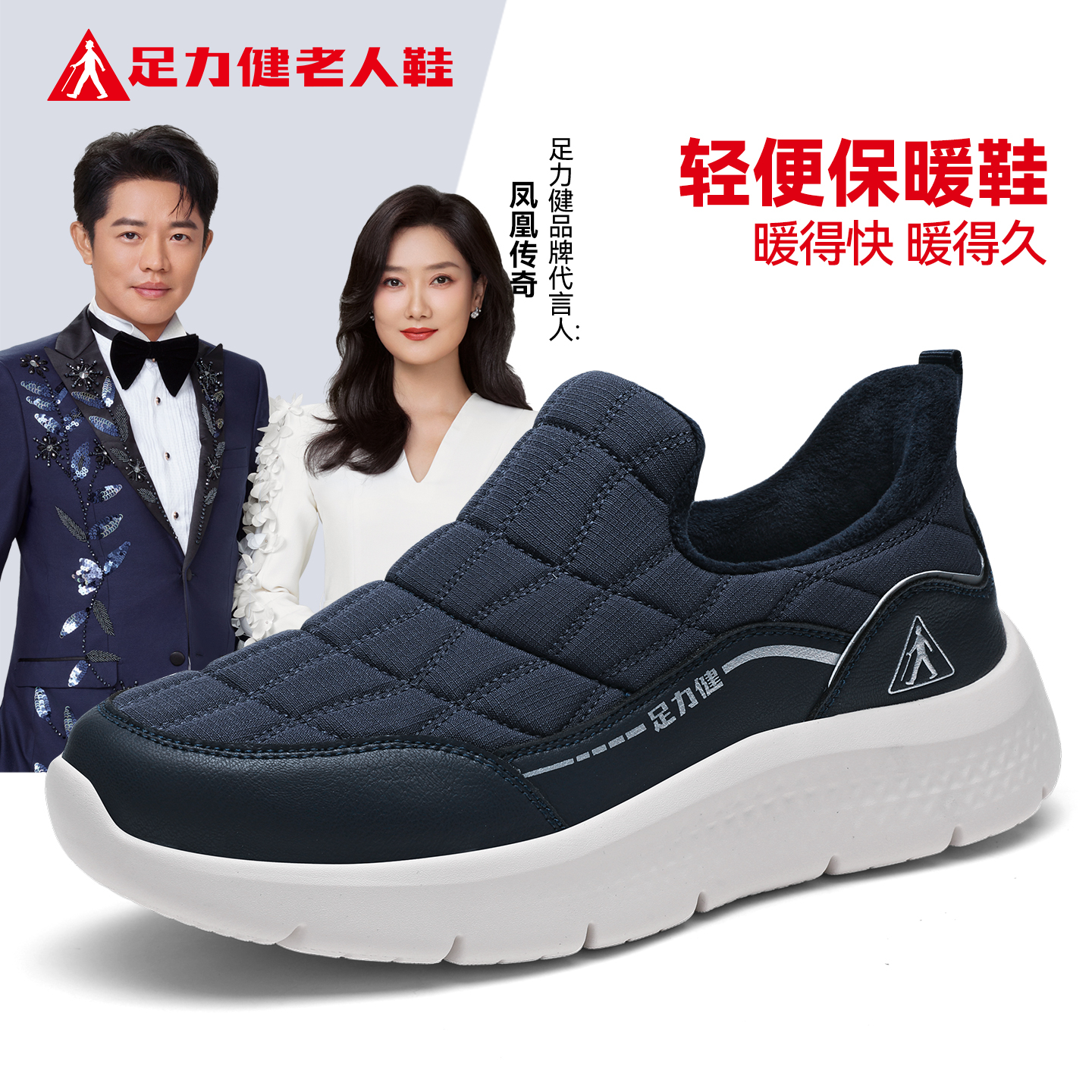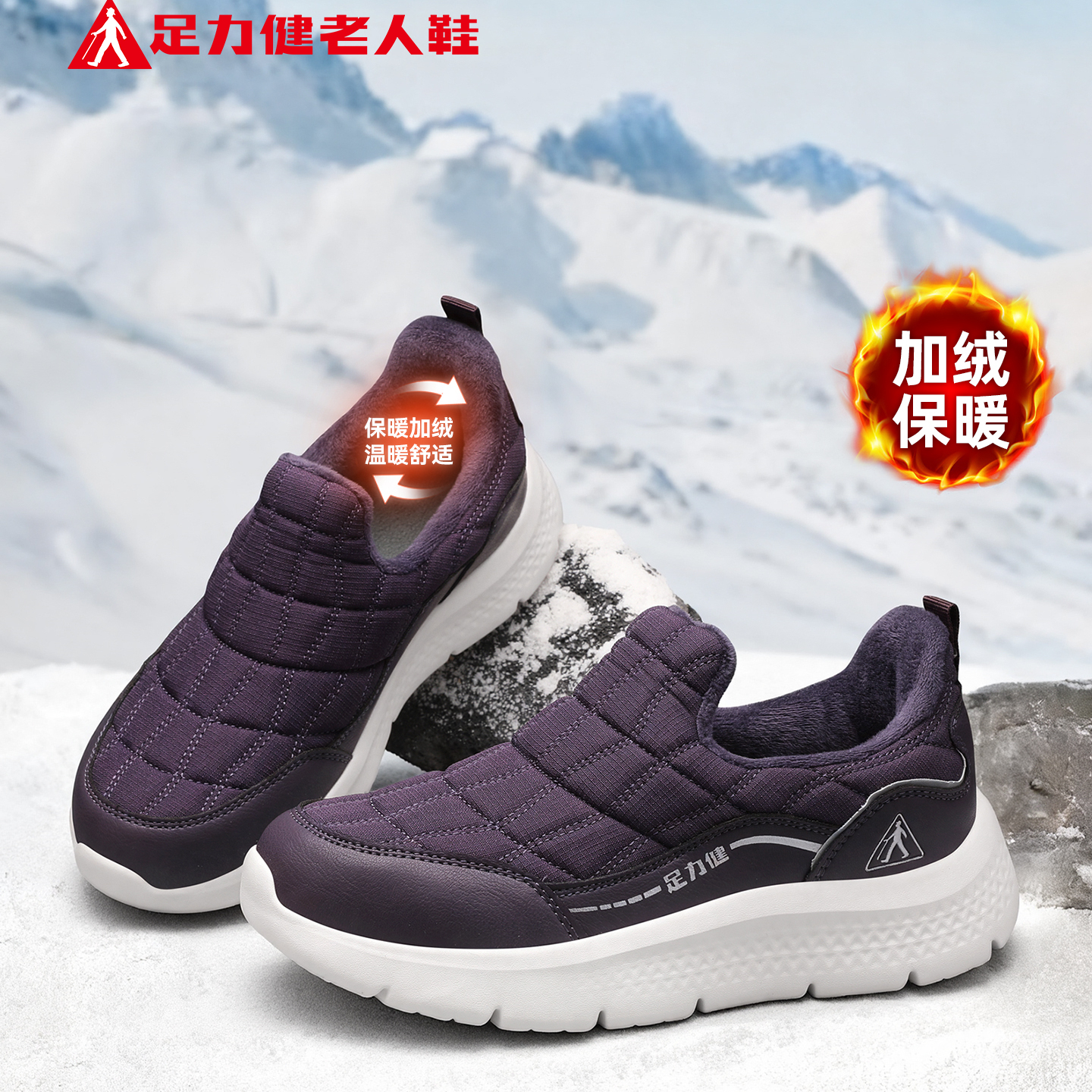 足力健老人鞋官方旗舰店中年妈妈冬季加绒保暖棉鞋一脚蹬健步女鞋
