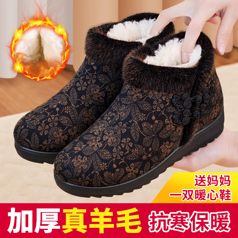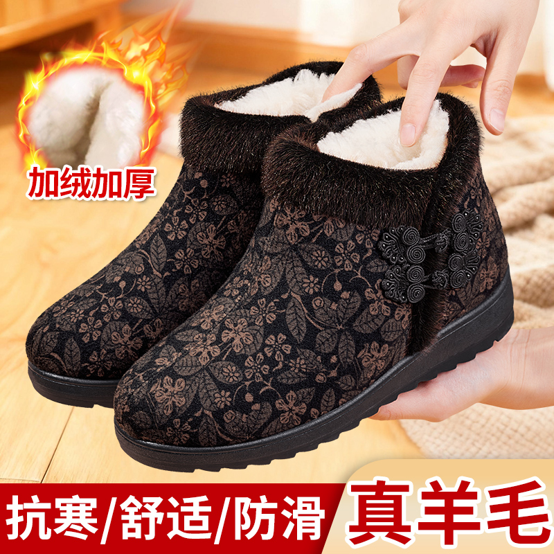 淘新款老北京布鞋冬季加绒女棉鞋保暖中老年妈妈鞋居家羊毛棉拖外穿