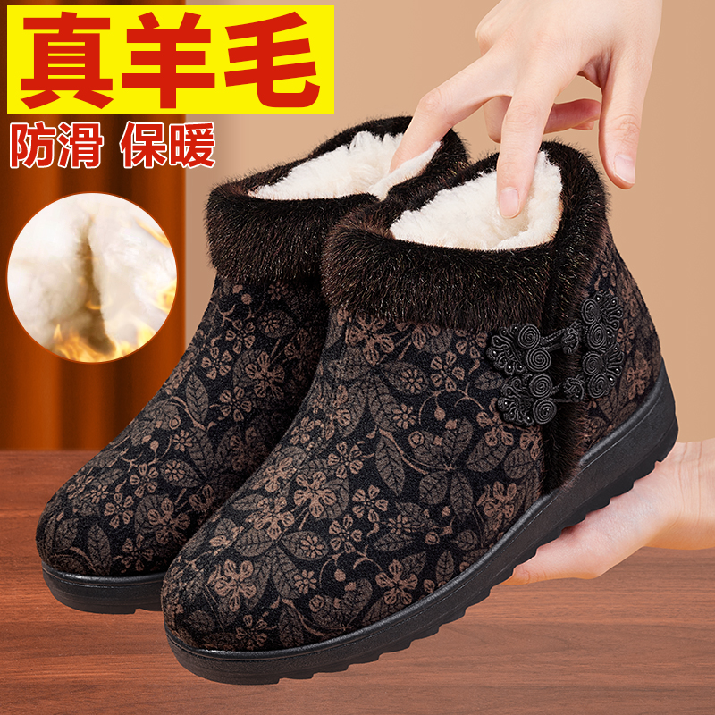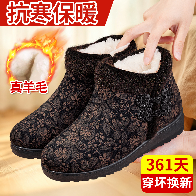 天足力健老人鞋旗舰店正品2025新款冬季女加绒妈妈防滑羊毛保暖棉鞋