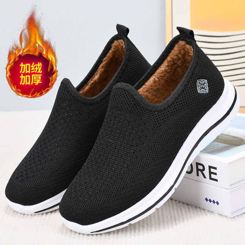 老北京布鞋女冬季2025新款一脚蹬防滑加绒加厚妈妈鞋保暖运动棉鞋