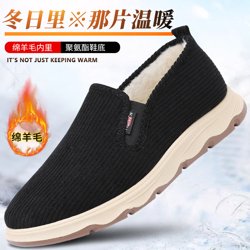 天猫意迪森2025冬季上新绵羊毛棉鞋软底防滑中老年男鞋加绒保暖老人鞋