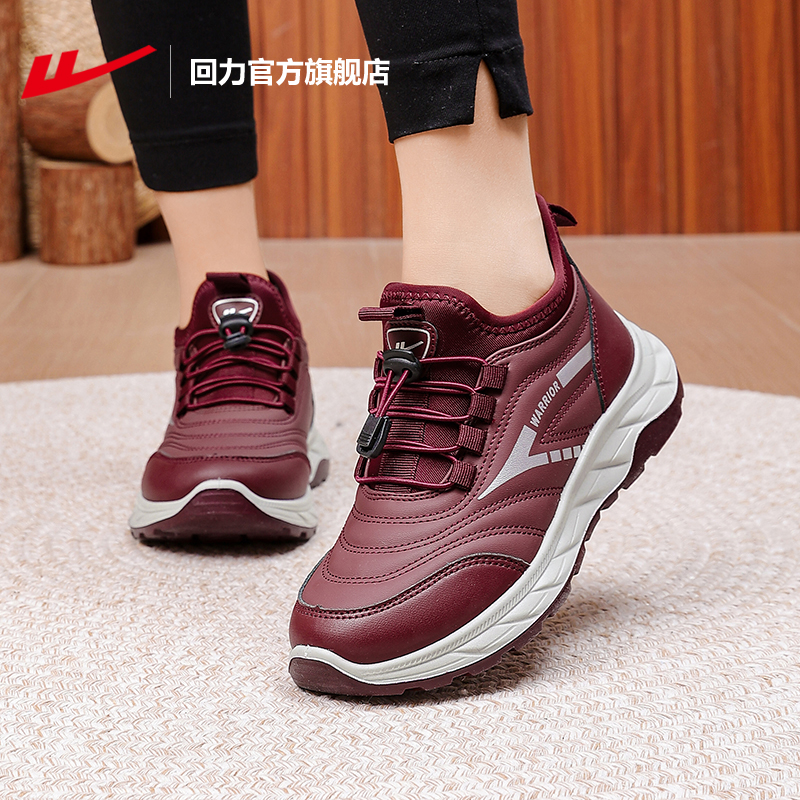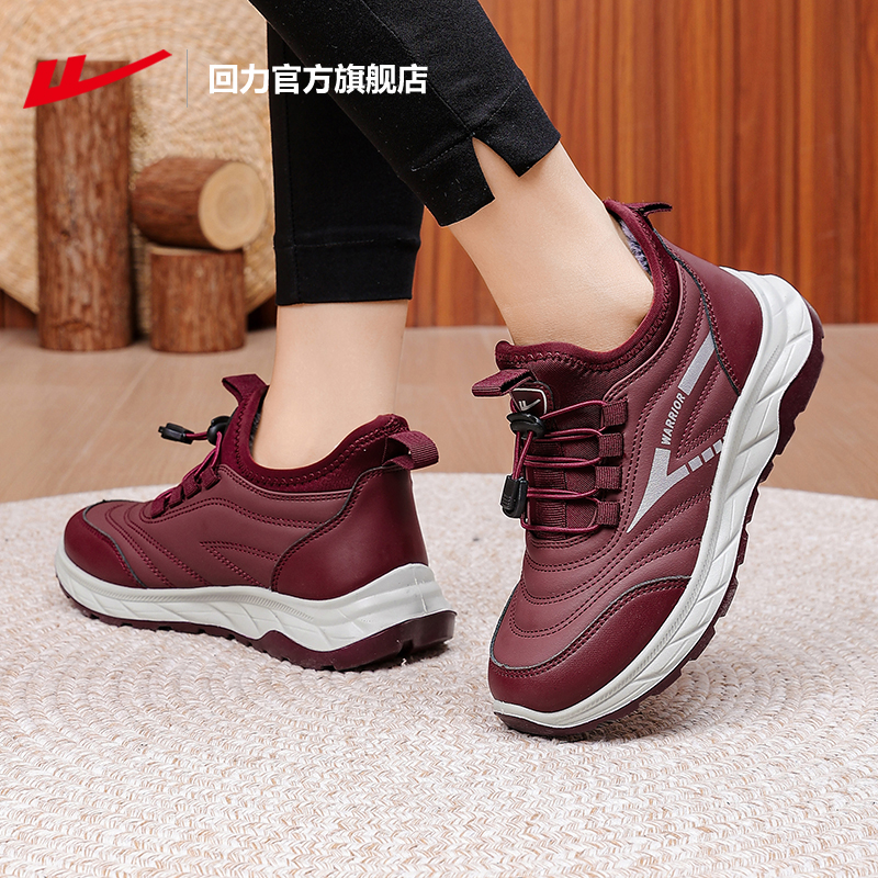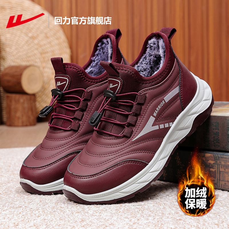天猫回力官方旗舰店妈妈鞋冬季加绒保暖中老年人棉鞋皮面防水老人鞋子