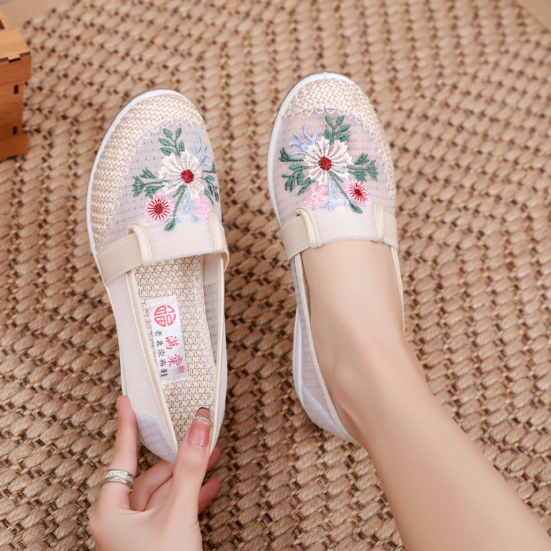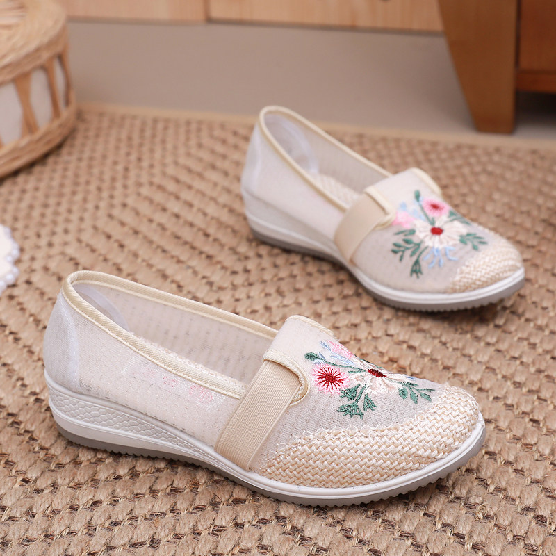 淘宝夏季网纱鞋女坡跟绣花鞋老北京布鞋女鞋透气古风女单鞋休闲妈妈鞋