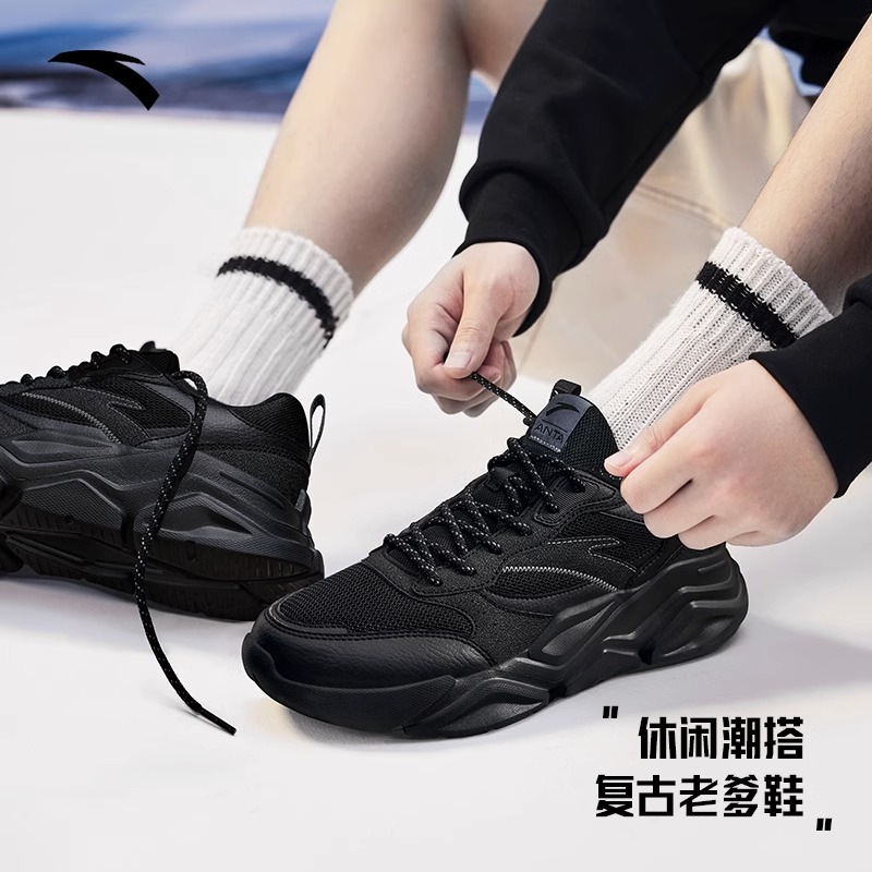 特步男鞋星陨ET秋冬网面透气老爹鞋黑色轻便休闲鞋977319320047