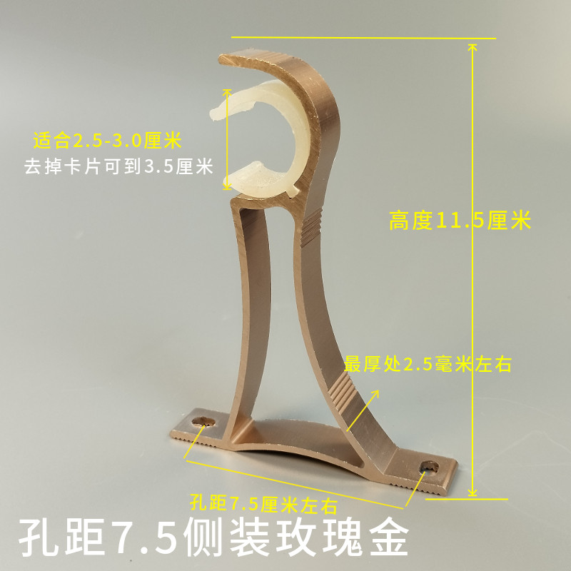 淘宝铝合金窗帘杆固定底座孔距7.5侧装安装码罗马杆单双杆墙装支撑架