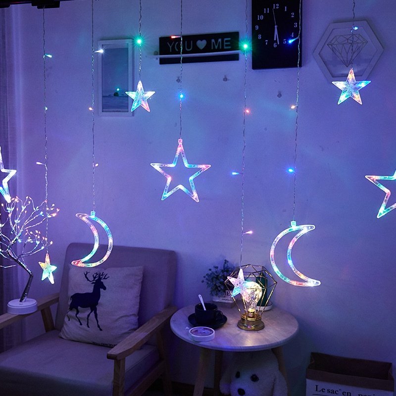 淘宝led太阳能窗帘星星灯饰圣诞节装饰房间卧室布置彩灯闪灯串灯挂灯