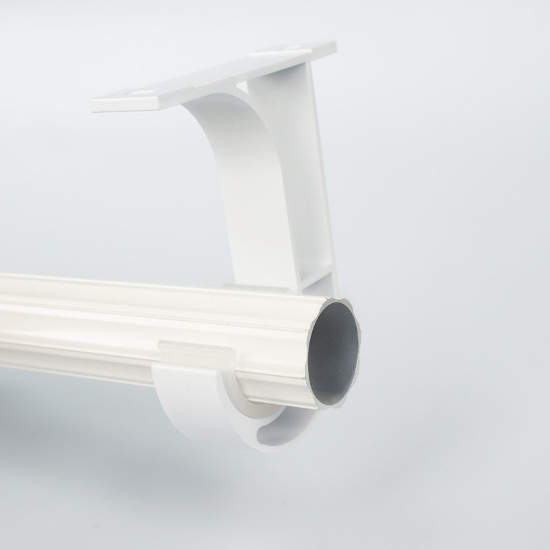 这款白色铝合金罗马杆窗帘杆,采用加厚材质打造,坚固耐用,承重性强,适用于单杆或双杆安装。配备顶装式打孔固定支架,安装稳固,不易松动,适合多种墙体结构。表面经精细喷涂处理,色泽均匀,质感细腻,与现代家居风格完美融合。双杆设计可同时悬挂纱帘与遮光帘,灵活实用,满足日常遮光与装饰需求。支架与杆体连接紧密,滑动顺畅,静音效果佳。整体结构简约大方,安装便捷,是提升居室美观与功能性的理想选择,适用于客厅、卧室、书房等多种空间。