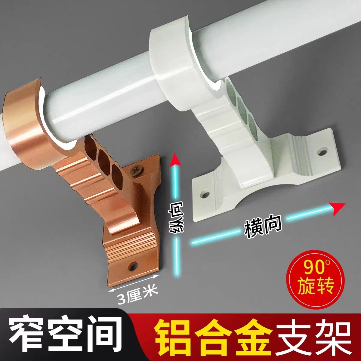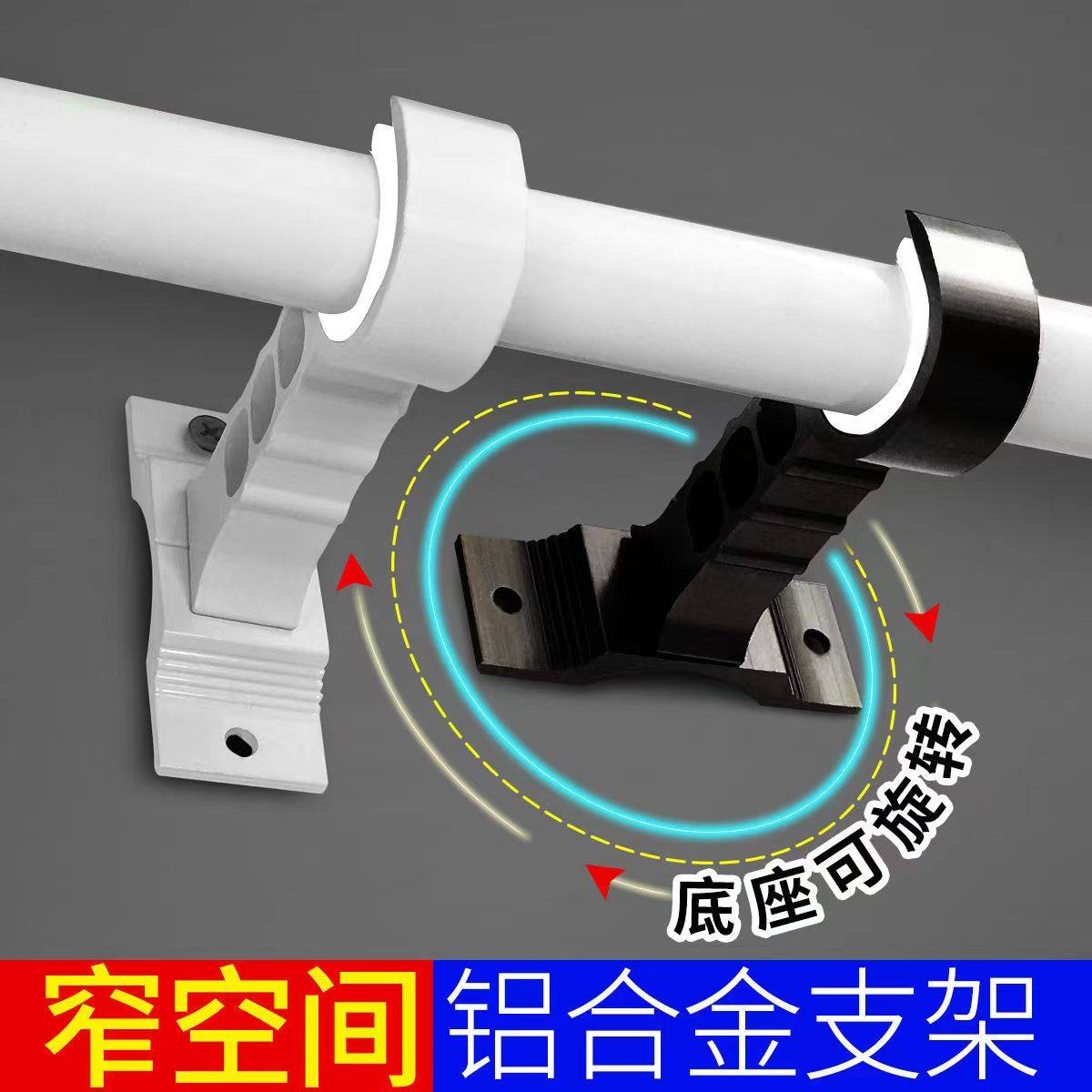 淘宝窗帘杆铝合金可旋转支架单杆双杆固定底座窄小空间支撑架墙装配件