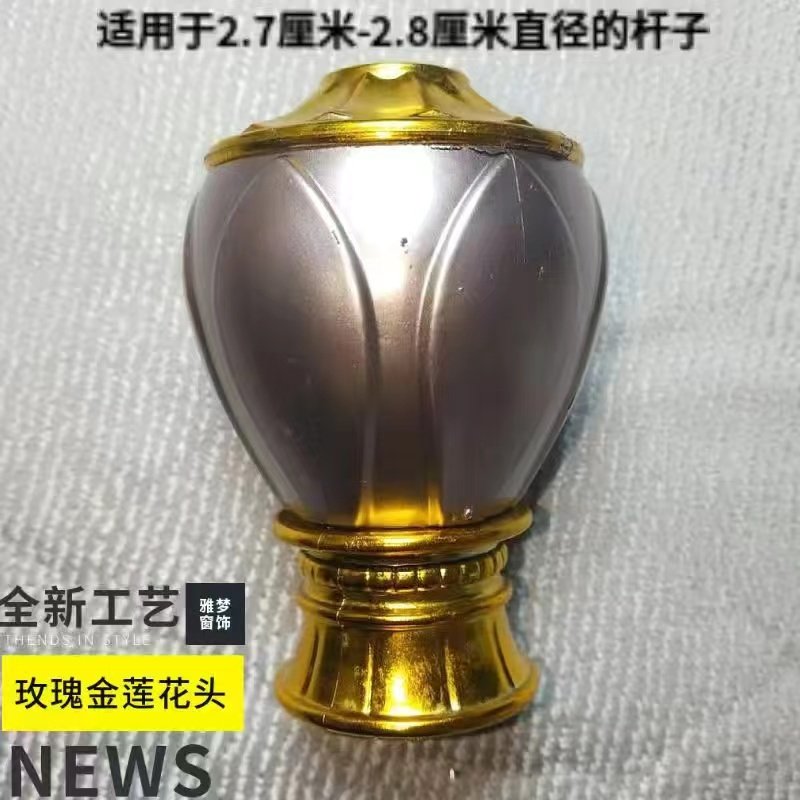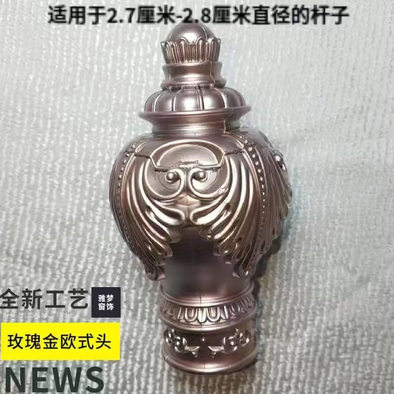 窗帘杆堵头罗马杆装饰头是一款兼具实用与美观的辅料配件,适用于各类罗马杆末端封口。采用优质材质精工打造,表面光滑细腻,质感高级,有效防止窗帘杆外露端头划伤墙面或人身,提升使用安全性。其通用设计适配多种规格罗马杆,安装简便,稳固耐用。豪华造型融入欧式、轻奢等风格元素,不仅起到封口保护作用,更成为窗帘整体装饰的点睛之笔,彰显居室格调与品味。无论是家庭、酒店还是办公空间,这款装饰头都能完美融入,兼顾功能性与艺术性,是窗帘系统的理想配套之选。