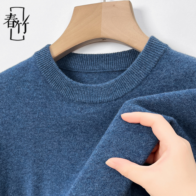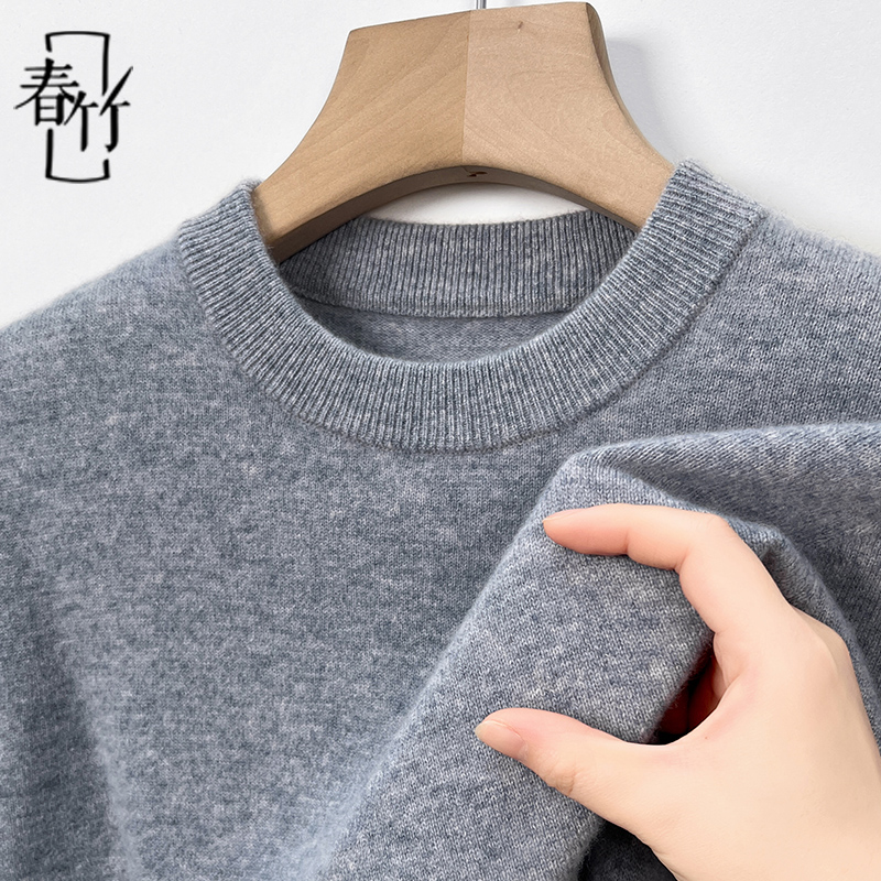 淘圆领超厚100纯山羊绒衫男士长袖套头纯色时尚百搭针织衫e家KVSS纱