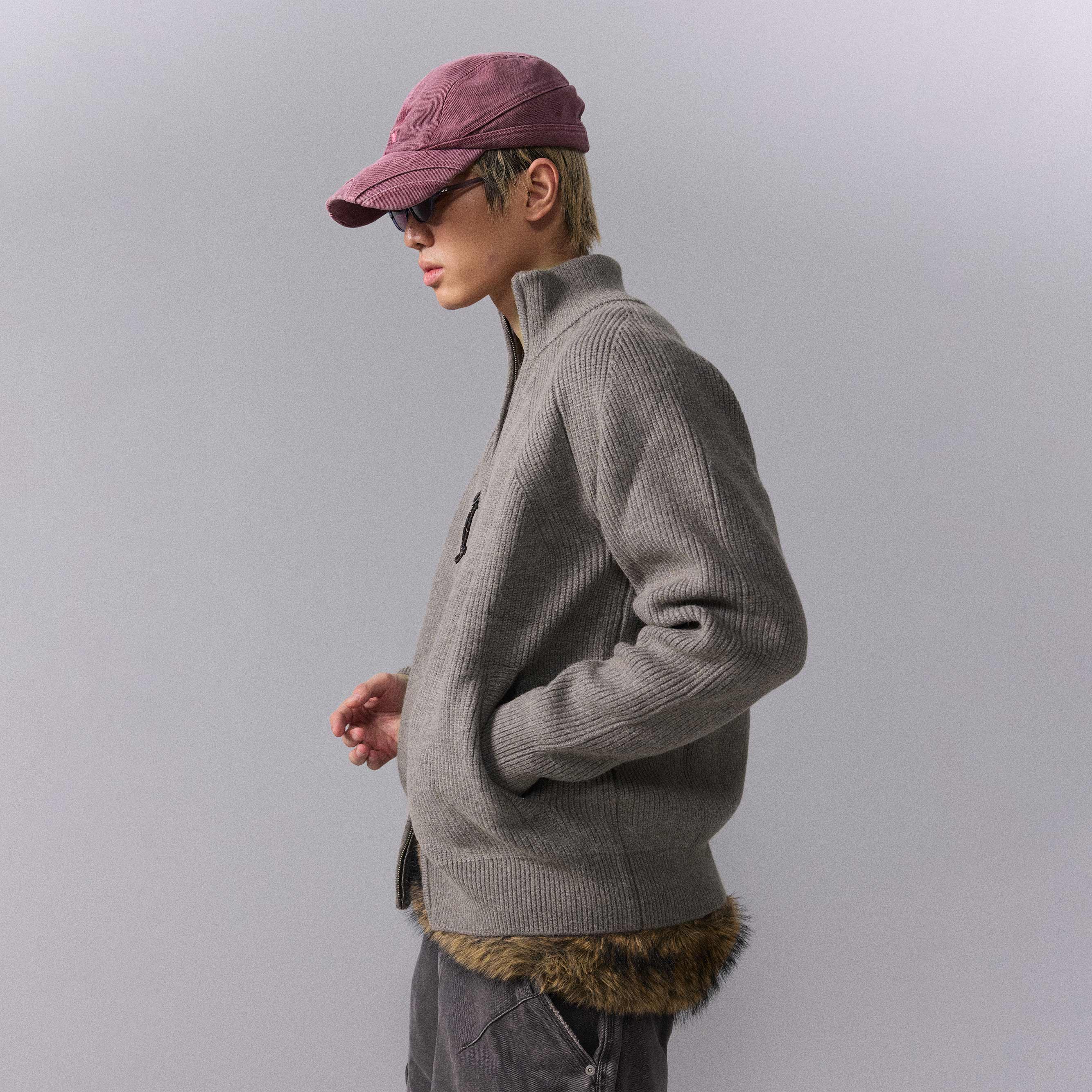 淘宝瞬时山野Monterest复古休闲立领挺括双开拉链针织开衫毛衣外套男