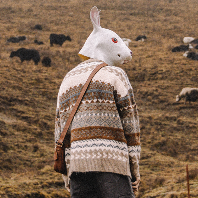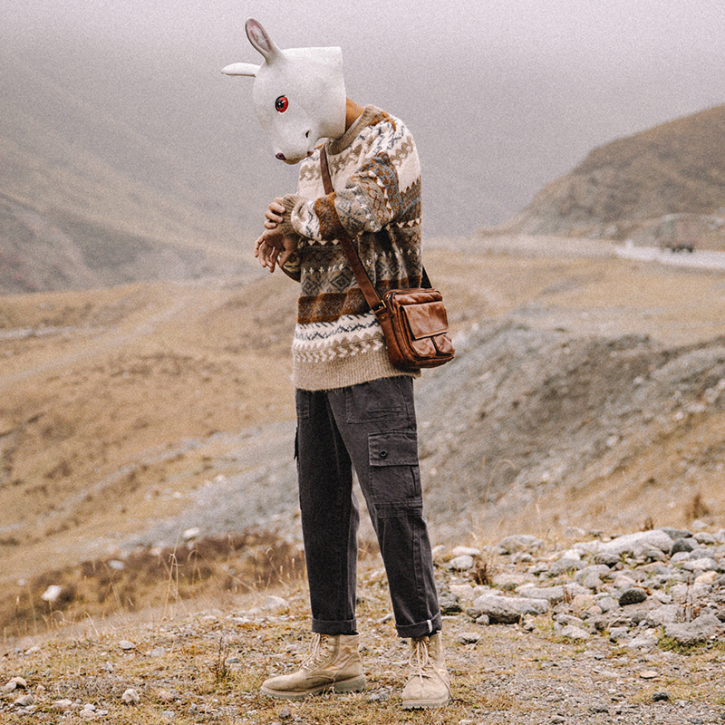 JHYQ净化眼球美式复古翻领拼编绳毛衣男秋冬宽松针织衫老钱风外套
