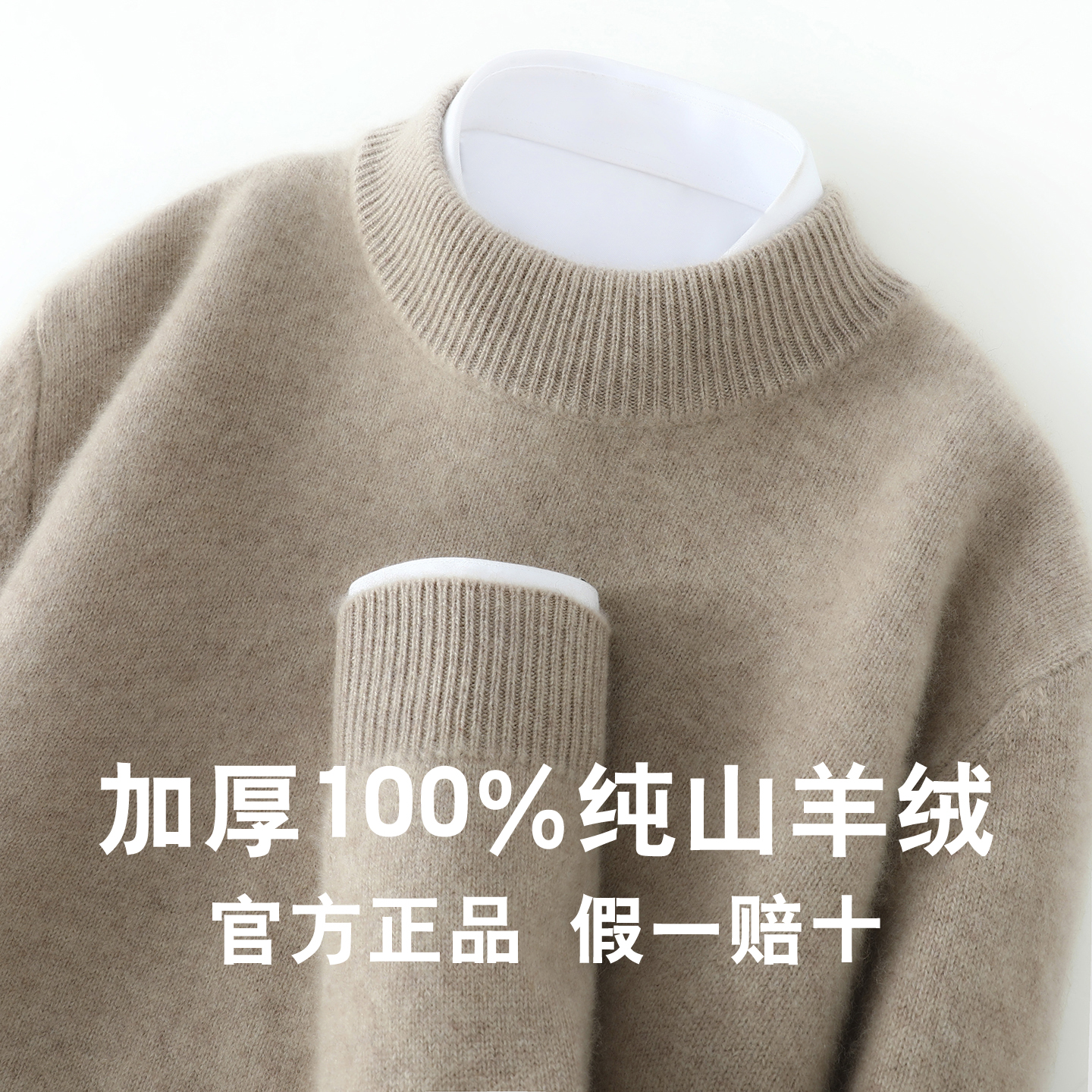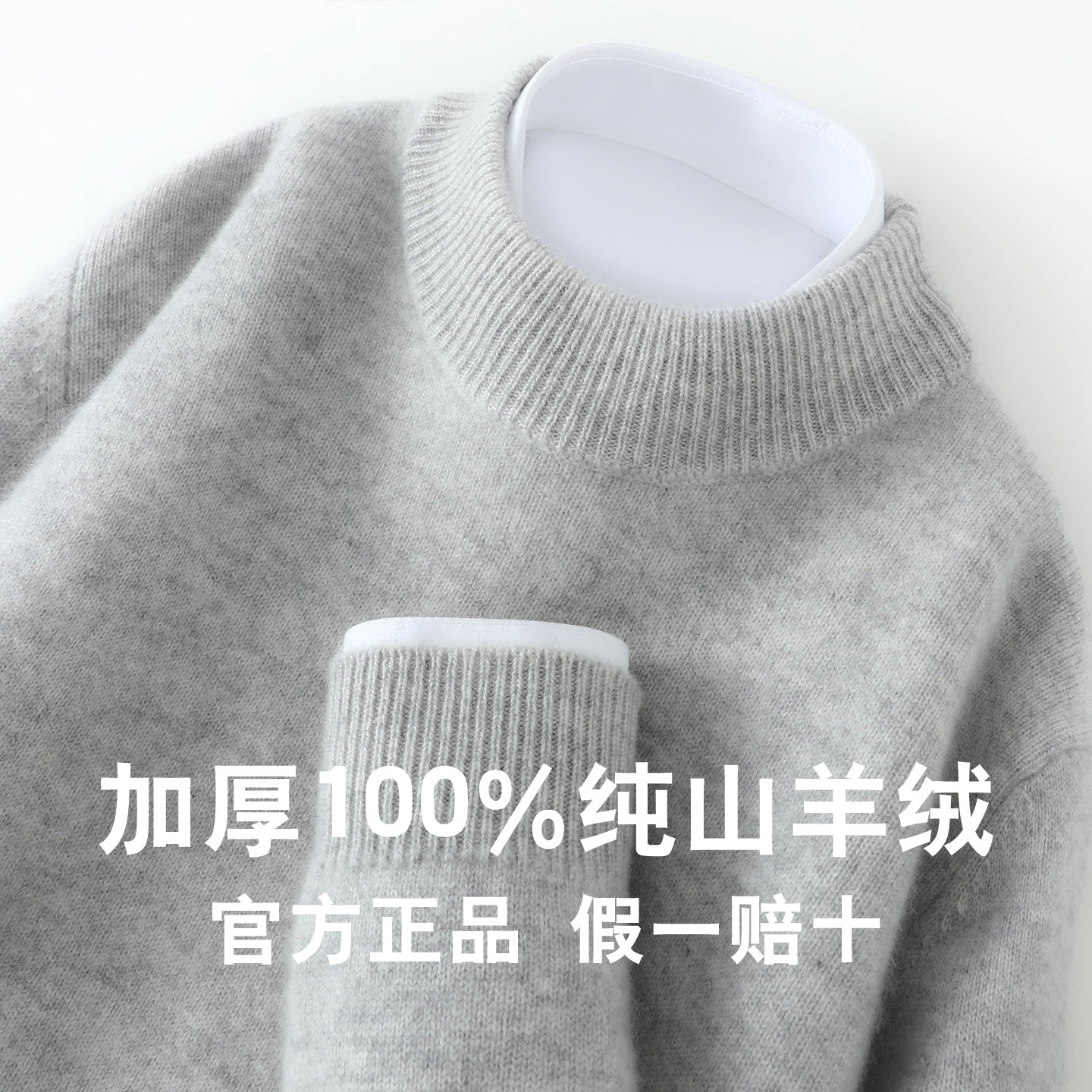 天圆领加厚100纯山羊绒衫男秋冬季新款针织打底宽松中青年保暖毛衣