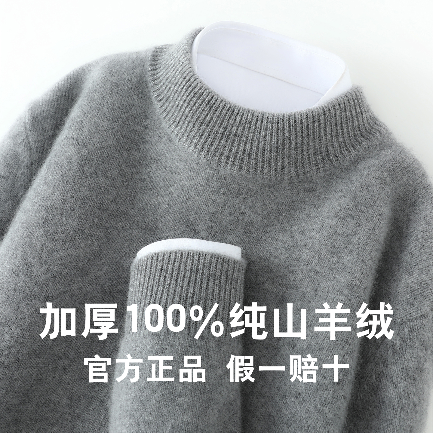 淘宝冬季双股加厚100%纯山羊绒衫男士半高领针织衫毛衣男款宽松打底衫
