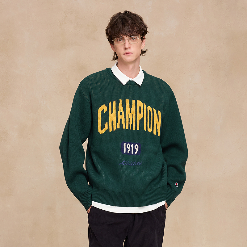 天猫Champion冠军毛衣男2025秋季新款撞色针织衫女美式复古学院风混色