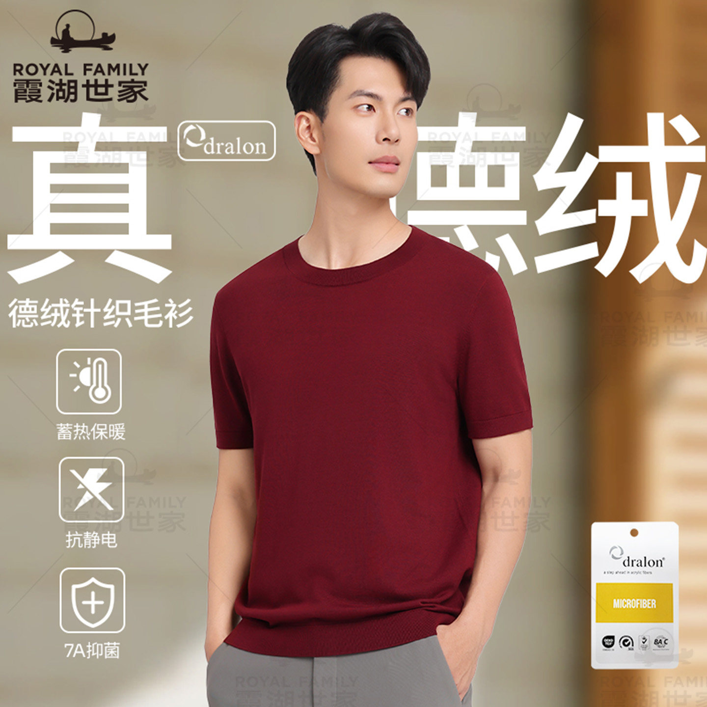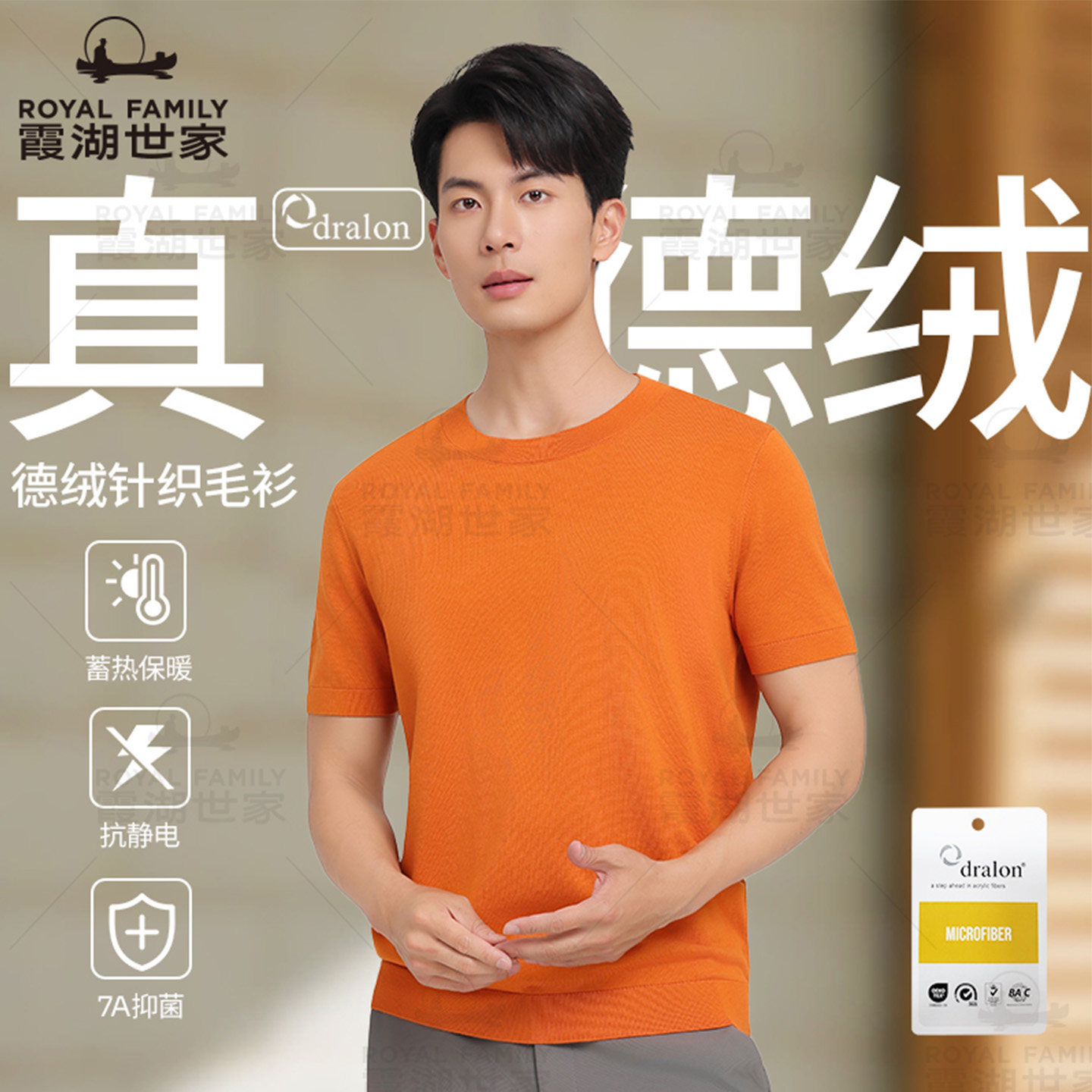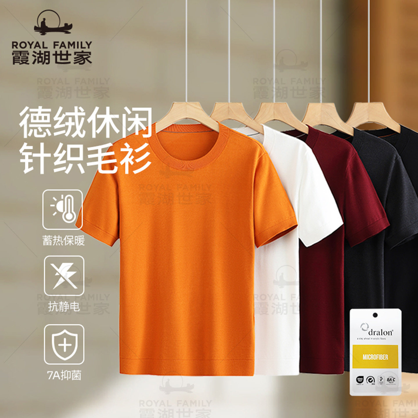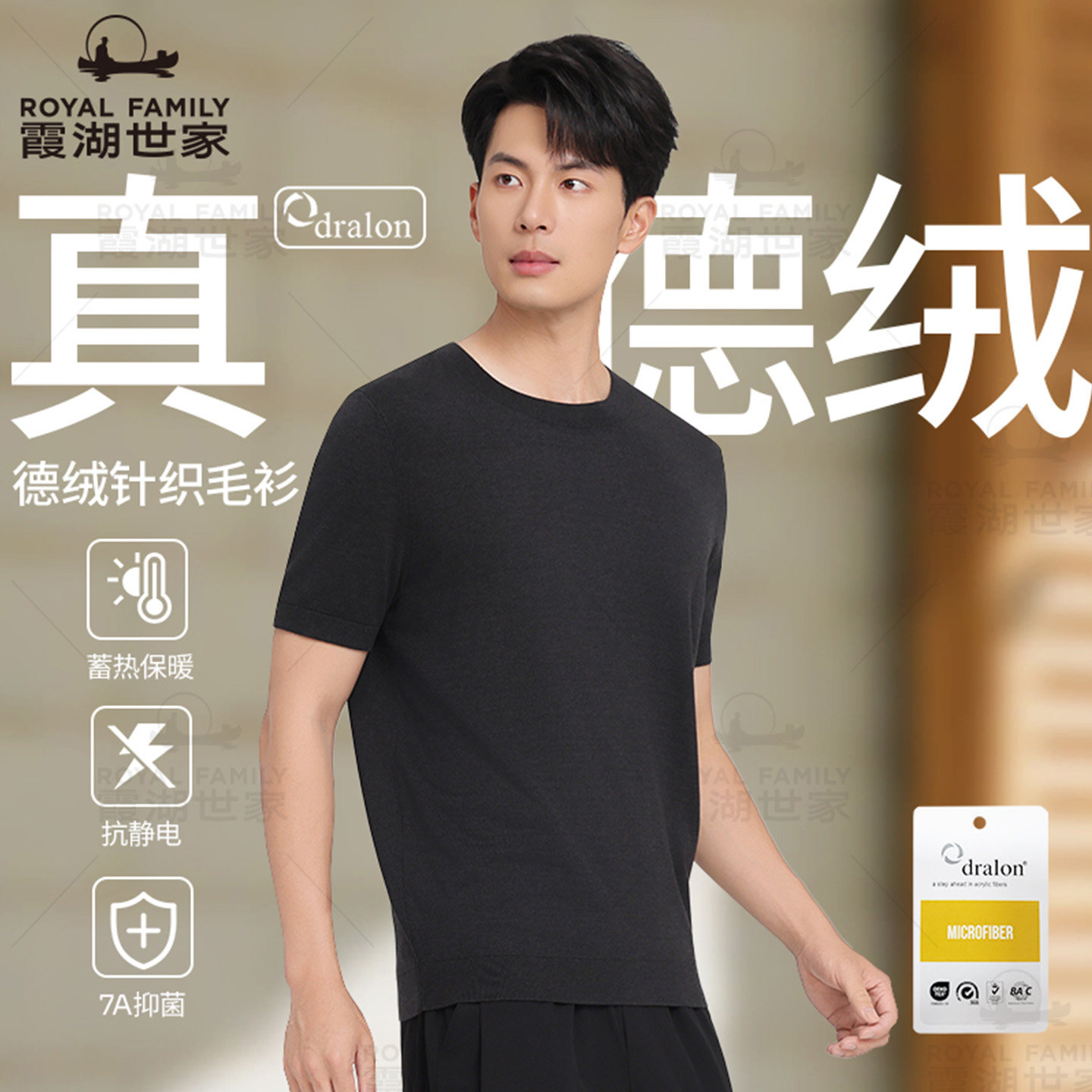 天猫【有授权真德绒】霞湖世家针织衫t恤短袖男2025秋7A抗菌打底363